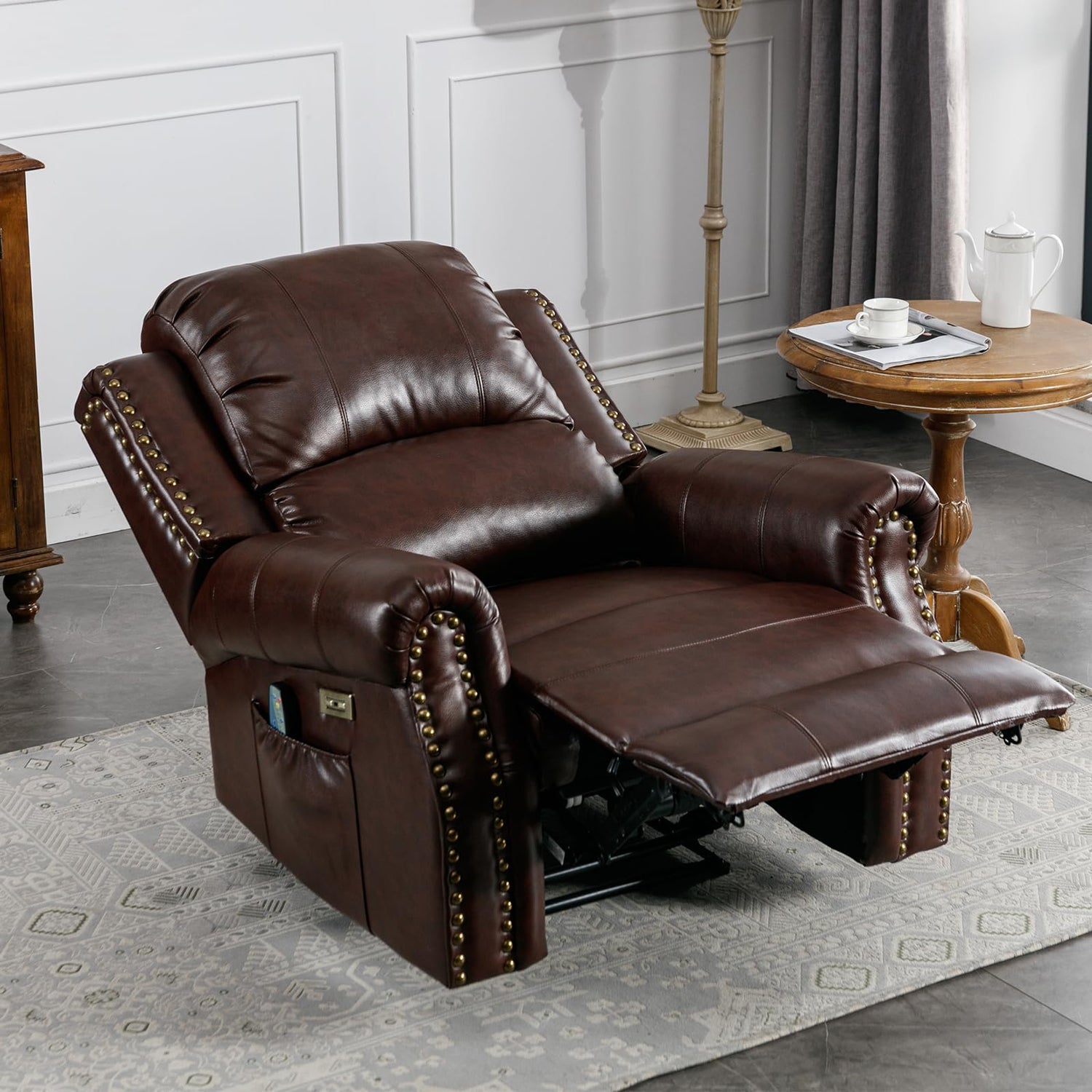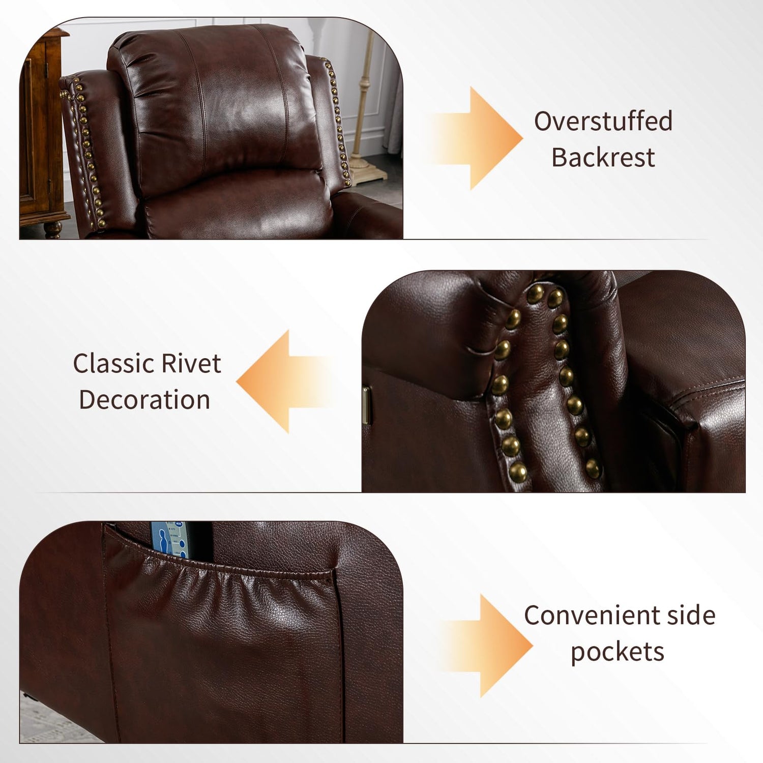 HAOMARKETS Classic Power Recliner Chair with Massage and Heat, Breathable Faux Leather Electric Recliner with USB Port, Overstuffed Reclining Sofa with Rivets for Living Room