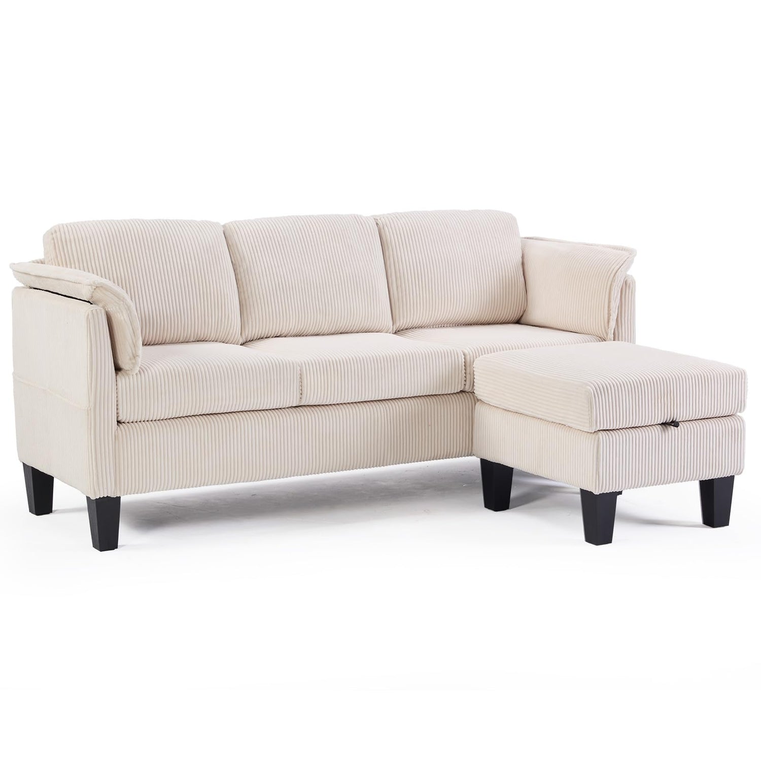 HAOMARKETS Modern Convertible L Shaped Sofa with Storage Ottoman,3-Seater Corduroy Fabric Couch with Reversible Chaise Lounge, Sectional Couches for Small Spaces, Living Room, Apartment, Beige