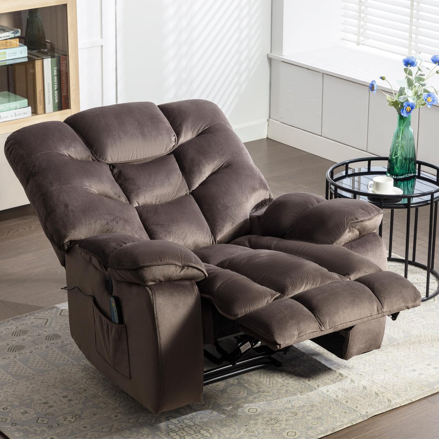 HAOMARKETS Oversized Electric Recliner Chairs with Massage and Heat, 41" Wide Power Reclining Chair with USB Charging Port, Breathable Overstuffed Reclining Sofa for Living Room Bedroom (No Lift)