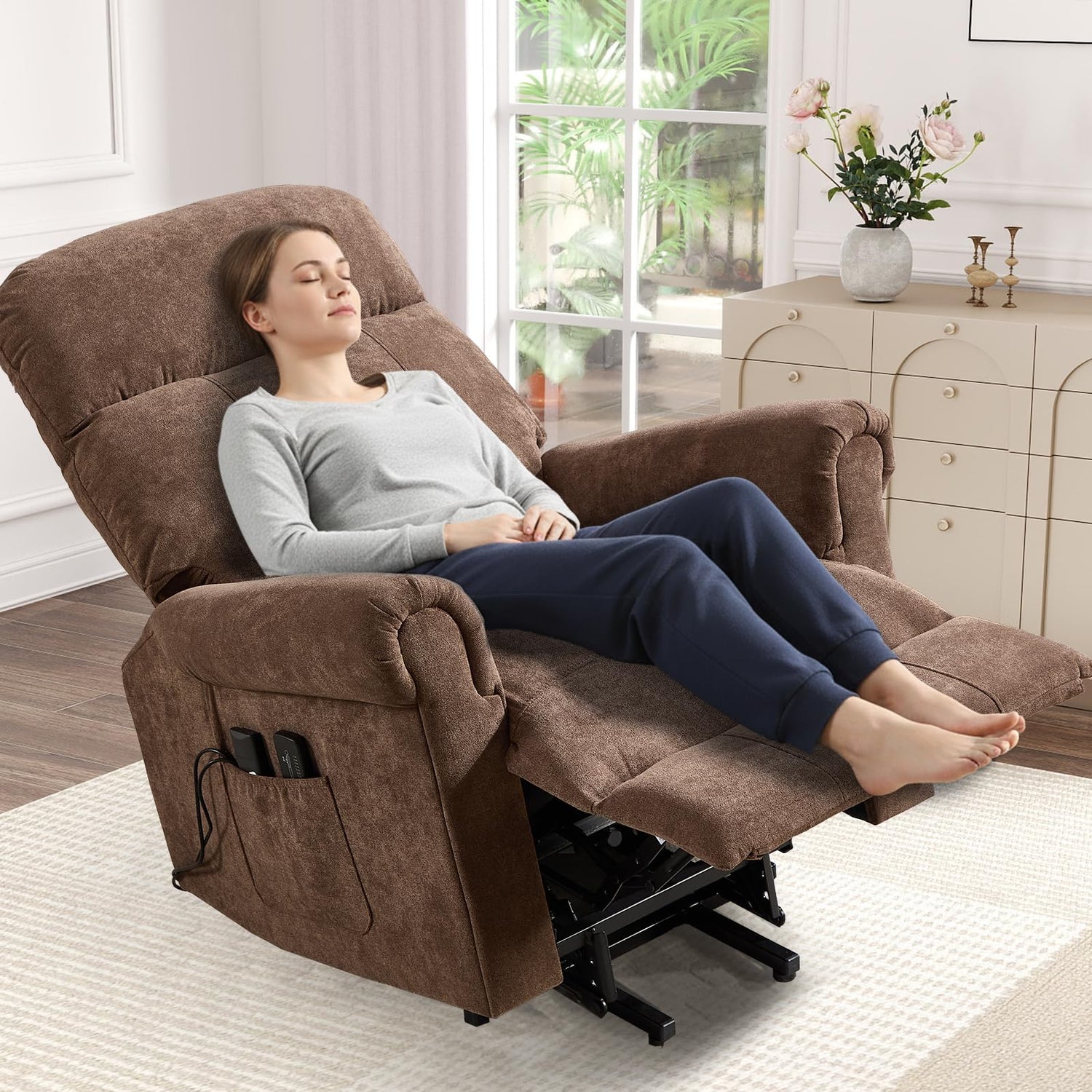 HAOMARKETS Power Lift Recliner Chair with Massage and Heat for Elderly, Electric Recliners with Remote Control,Soft Fabric Upholstered Reclining SingeSofa with Side Pocket for Living Room, Brown