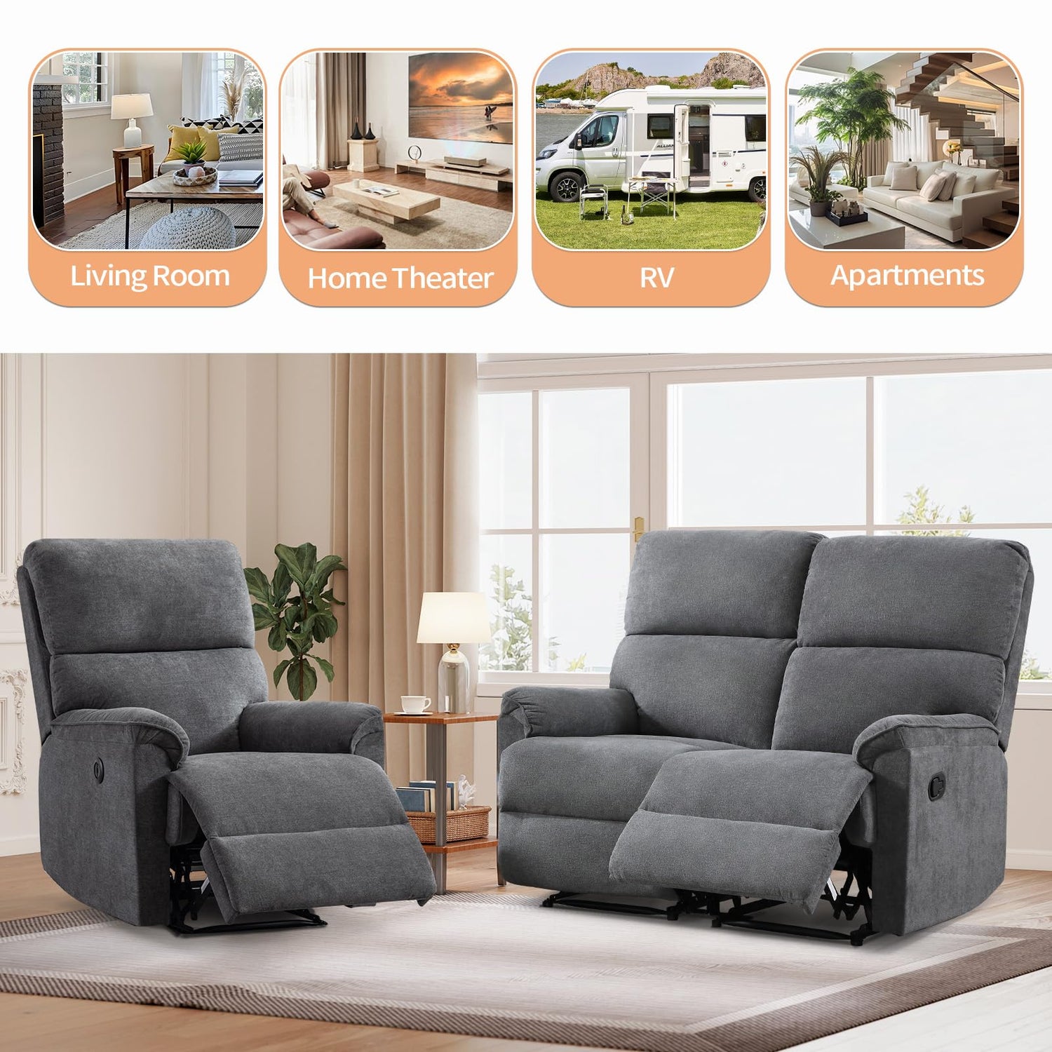 - Suitable for multiple rooms: This recliner sofa set is stylish and comfortable with a selection of comfortable and breathable fabrics. Simple colors and styling make this 2-piece sofa set suitable for a variety of decorative styles, making it a stylish choice for living rooms, bedrooms and offices