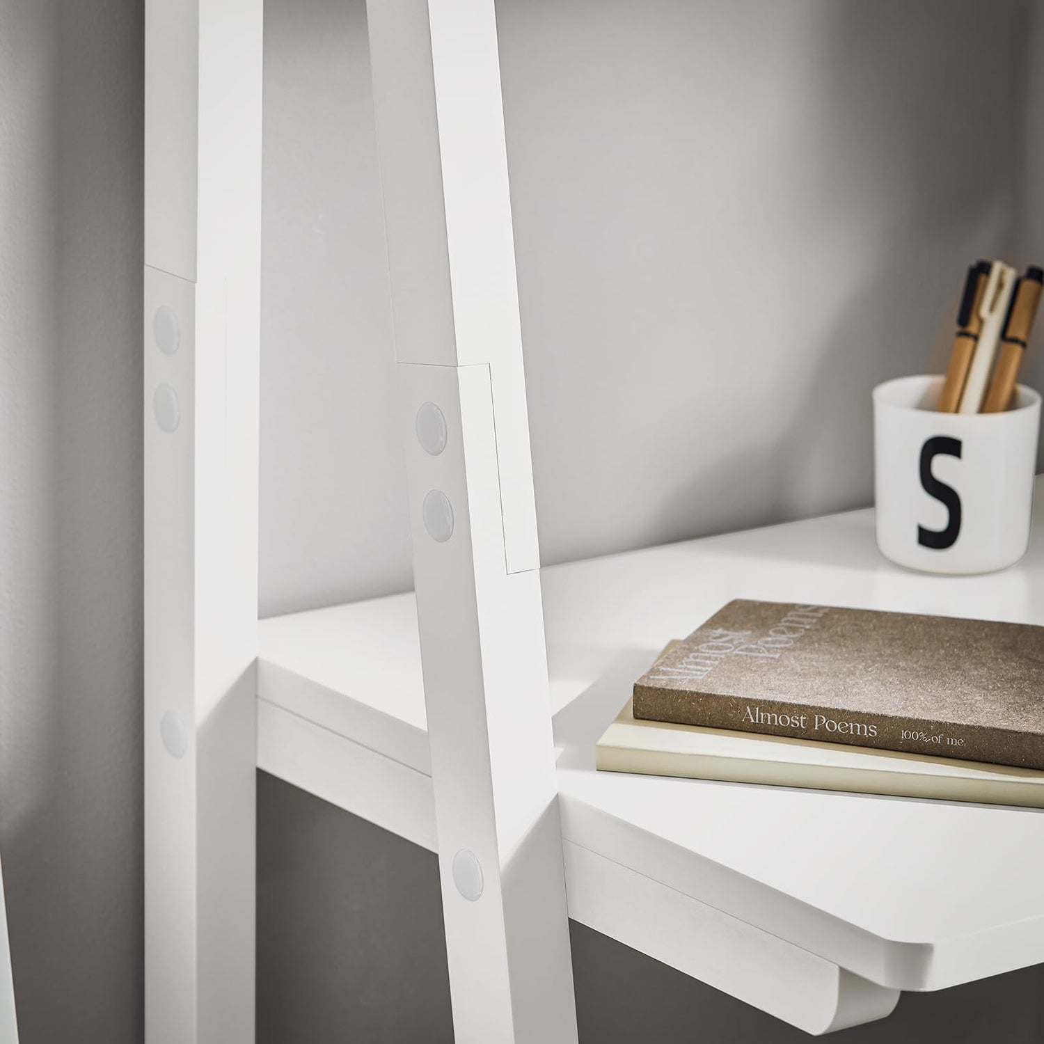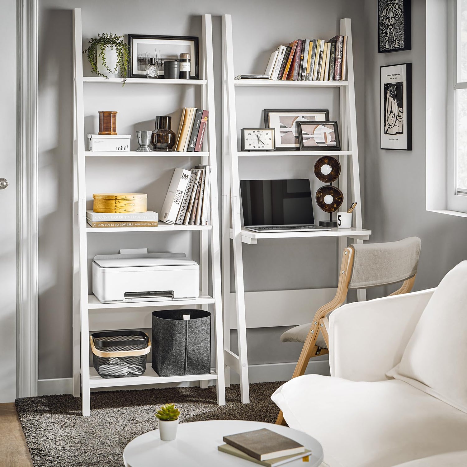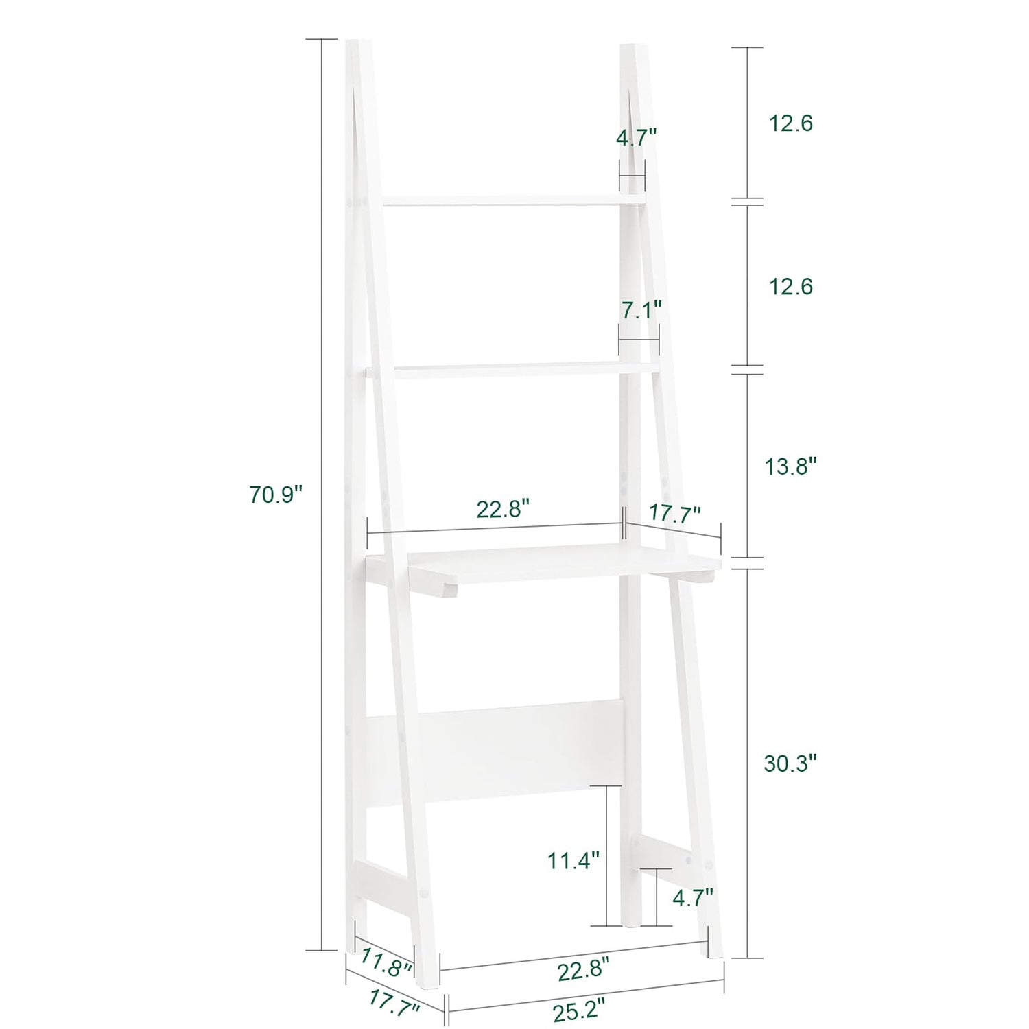 Haotian SoBuy Ladder Shelf Desk, Bookcase, Book Shelf, Leaning Desk with Shelves, Wall Shelf, White FRG60-W