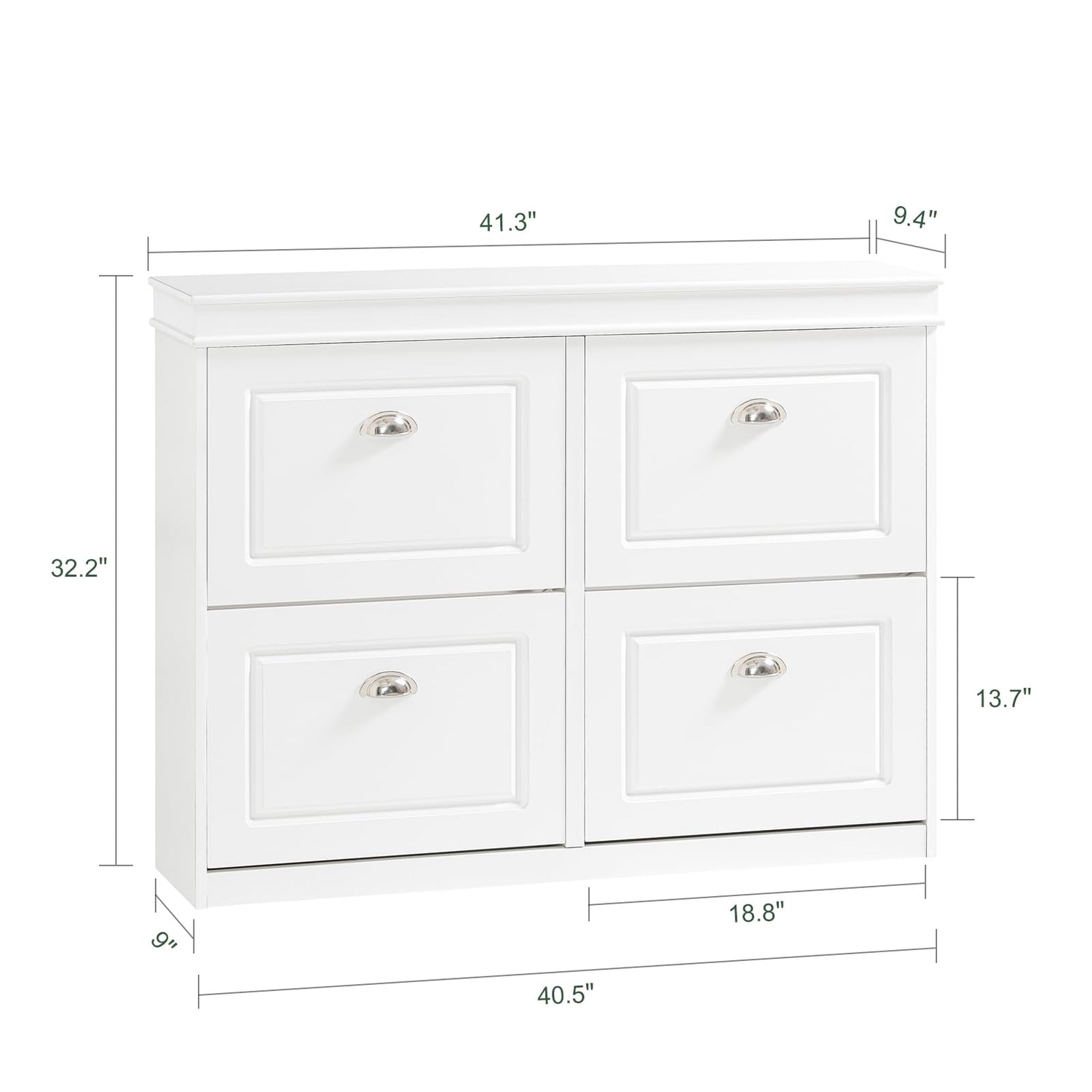 Haotian White Shoe Cabinet with 4 Flip Drawers, Large Freestanding Shoe Rack, Modern Shoe Organizer for Entryway, Hallway, Entance FSR79-W