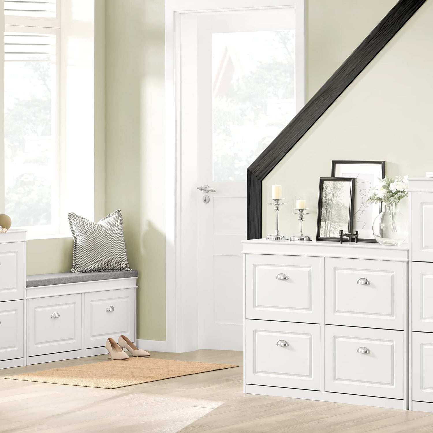 - [Entryway Shoe Cabinet]: The modern design shoe storage cabinet with 4 Flip-Drawers, stylish and simple white makes it a neat and beautiful finish and looks great in many different home styles. Perfect for placing in the entryway, hallway, living room, or porch, provides a neat looking in your home and space saving.