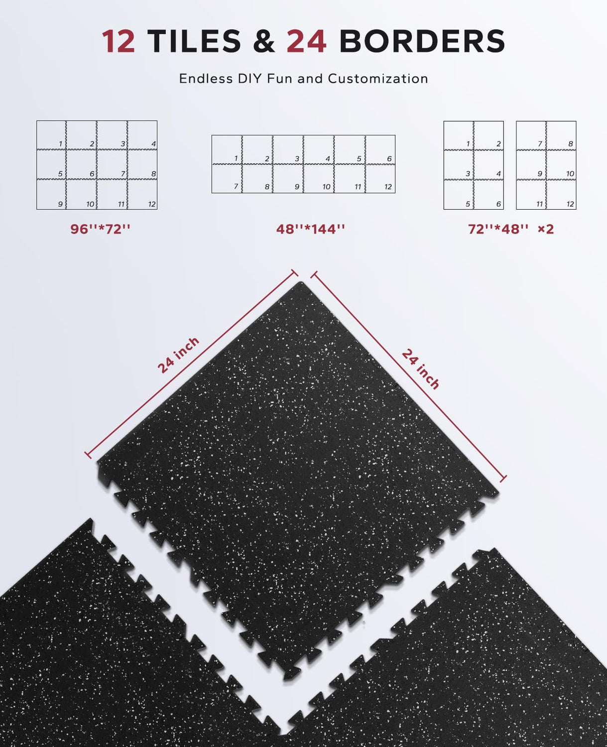 HAPBEAR 0.56'' Thick 12 Pcs 48 Sq Ft Exercise Equipment Mats - High-Density Rubber Top EVA Foam Interlocking Mats, 24x24in Tiles, Heavy-Duty Treadmill Mat for Hardwood Floors, Home Gym Mat