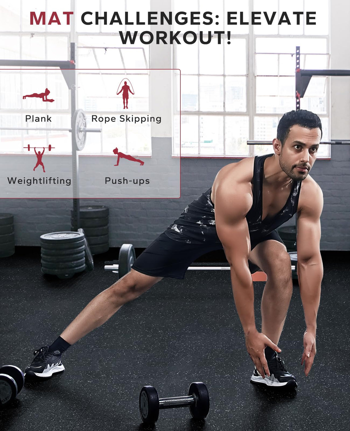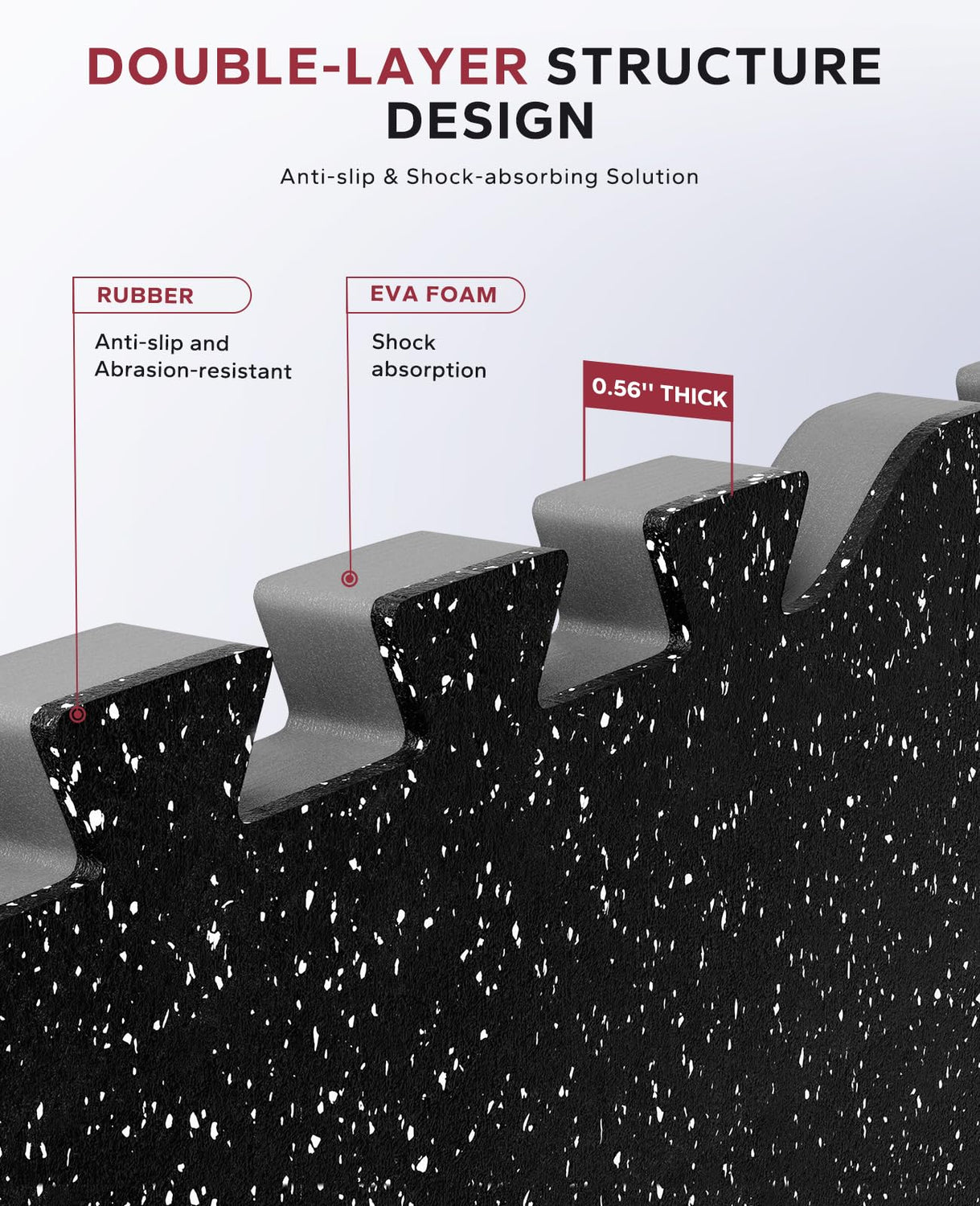 - ใ๐๐ฎ๐๐๐๐ซ & ๐๐๐ ๐๐ฎ๐๐ฅ-๐๐๐ฒ๐๐ซ ๐๐๐ฌ๐ข๐ ๐งใOur exercise mats have a two-layer design. The dense, textured rubber top ensures non-slip for stable heavy equipment. High-density EVA foam bottom absorbs shocks, reducing joint strain. The tough rubber-soft foam combo guarantees comfort and longer lifespan, a reliable fitness choice.