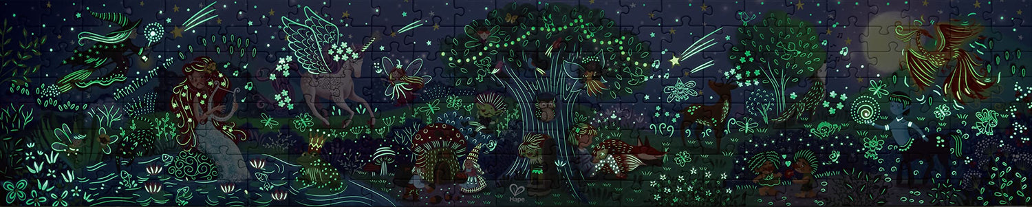 Hape Magic Forest Puzzle 1.5 Meter Long | 200 Pieces Colorful Giant Glow-in-The-Dark Enchanted Jigsaw, for Children 6+ Years