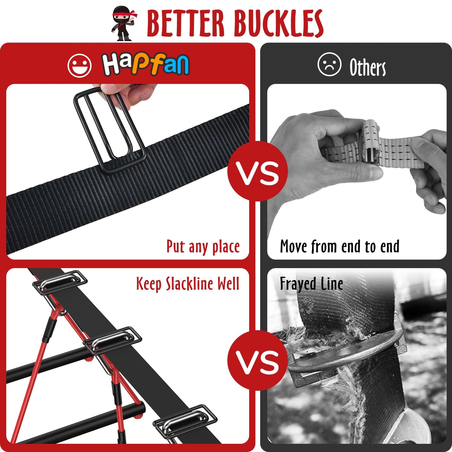 - 【Newly Designed Buckle】Our innovative buckle ensures quick setup and enhances safety, preventing any fraying of the slackline. This time-saving design provides extra security during playtime
