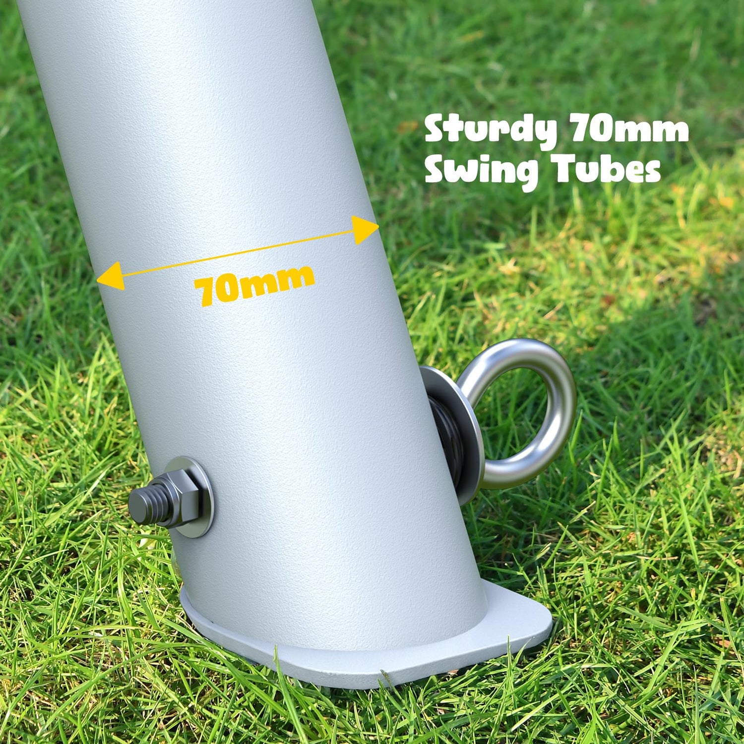 - 【9.5' Tall Swing Set】The 9.5-foot-high swing stand allows kids to swing higher and faster, providing an exhilarating experience. Whether you're looking for swing sets for backyard for kids 3-8 or big kids 8-12, this sturdy frame is designed to bring ultimate fun to your backyard for toddlers, older kids, and even adults