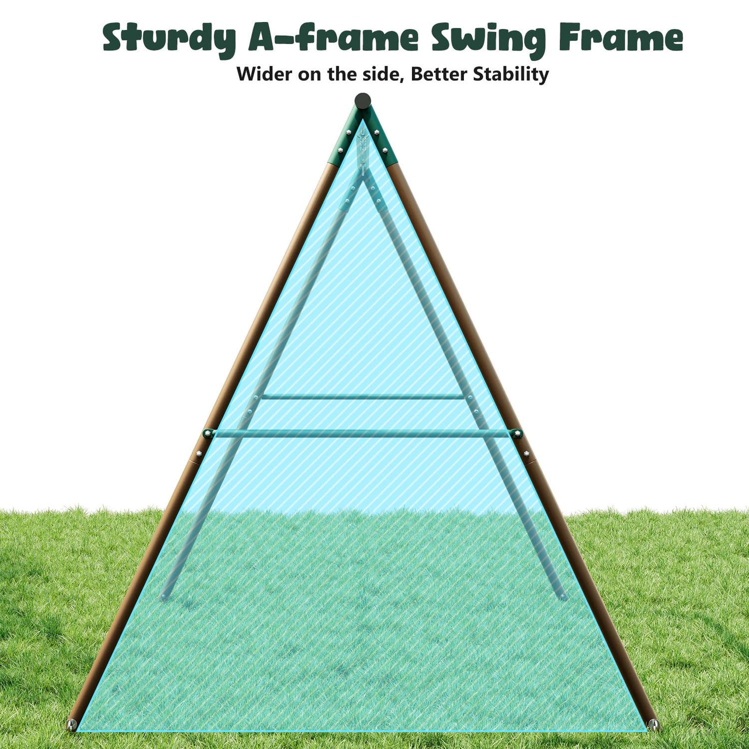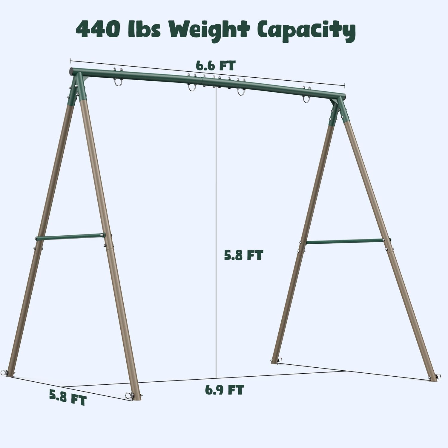 - 【Sturdy Metal Swing Set for Kids 】Wider on the side and 4 spiral stakes ensure great stability. Supports up to 440 lbs, with durable powder-coated tubes that resist rust and need no daily maintenance