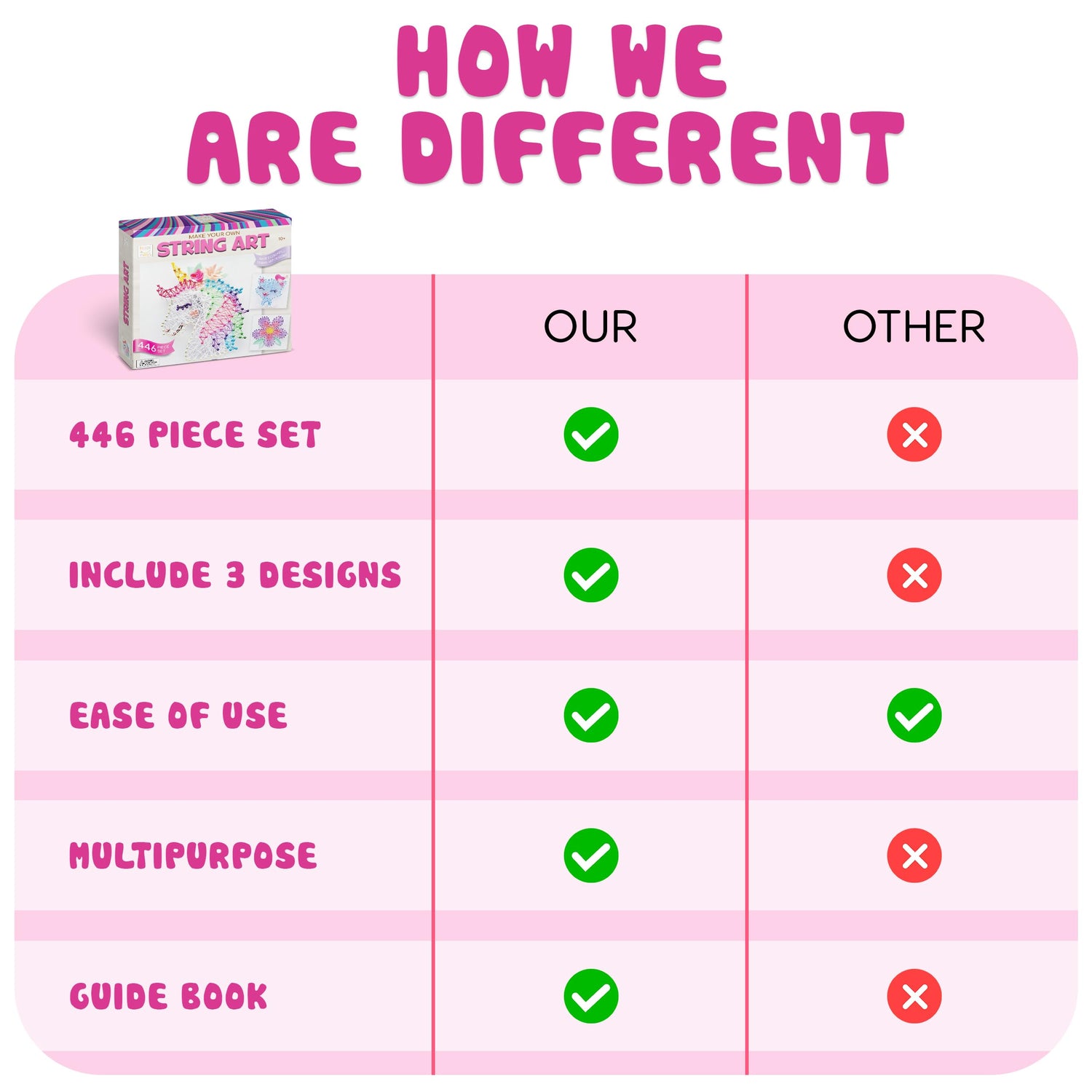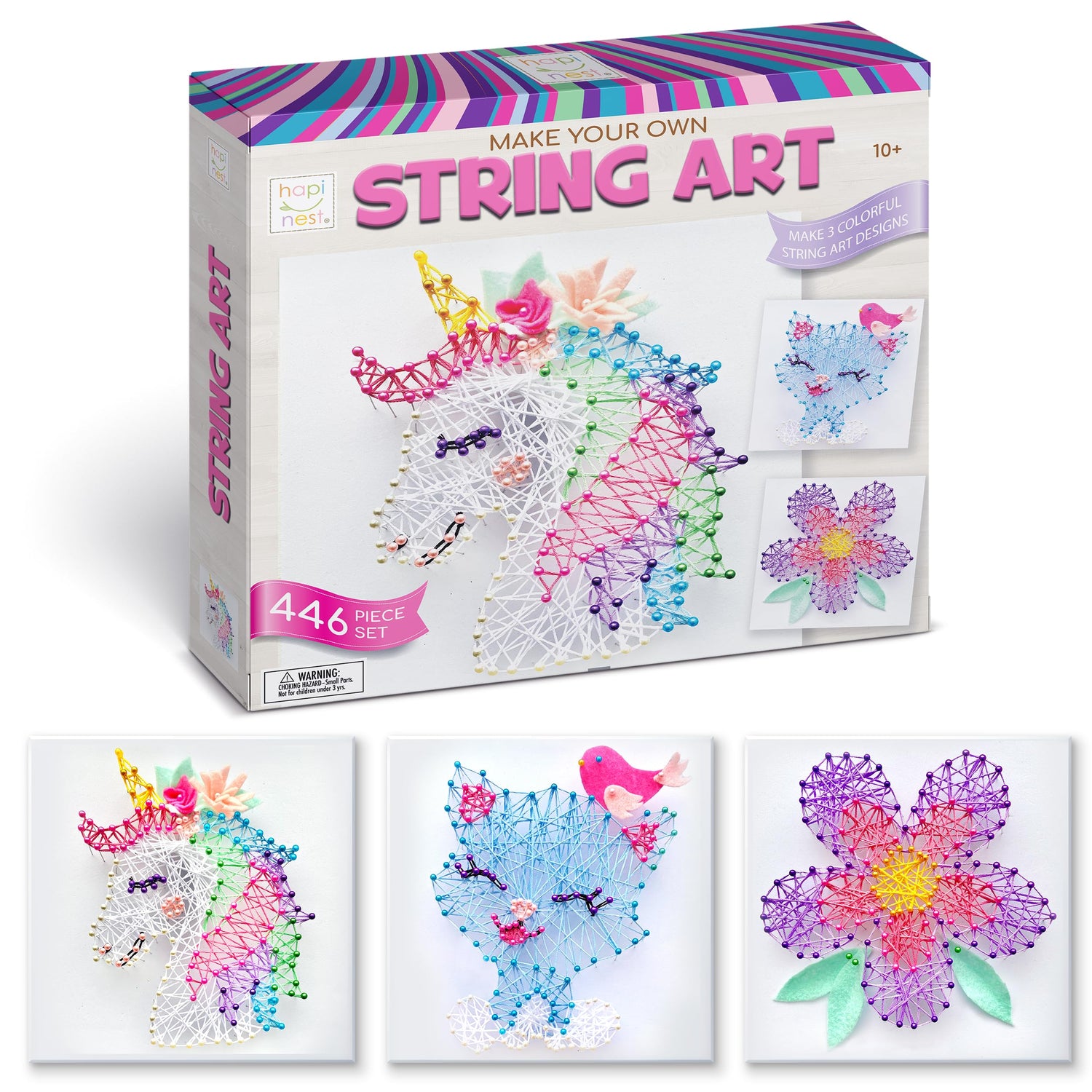 - String Art Craft For Kids : Unleash creativity with the Hapinest string art kit for kids. This complete craft set includes three delightful 3D designs: a unicorn, cat, and flower. Perfect for arts and crafts for girls 10-12 who love hands-on projects.
