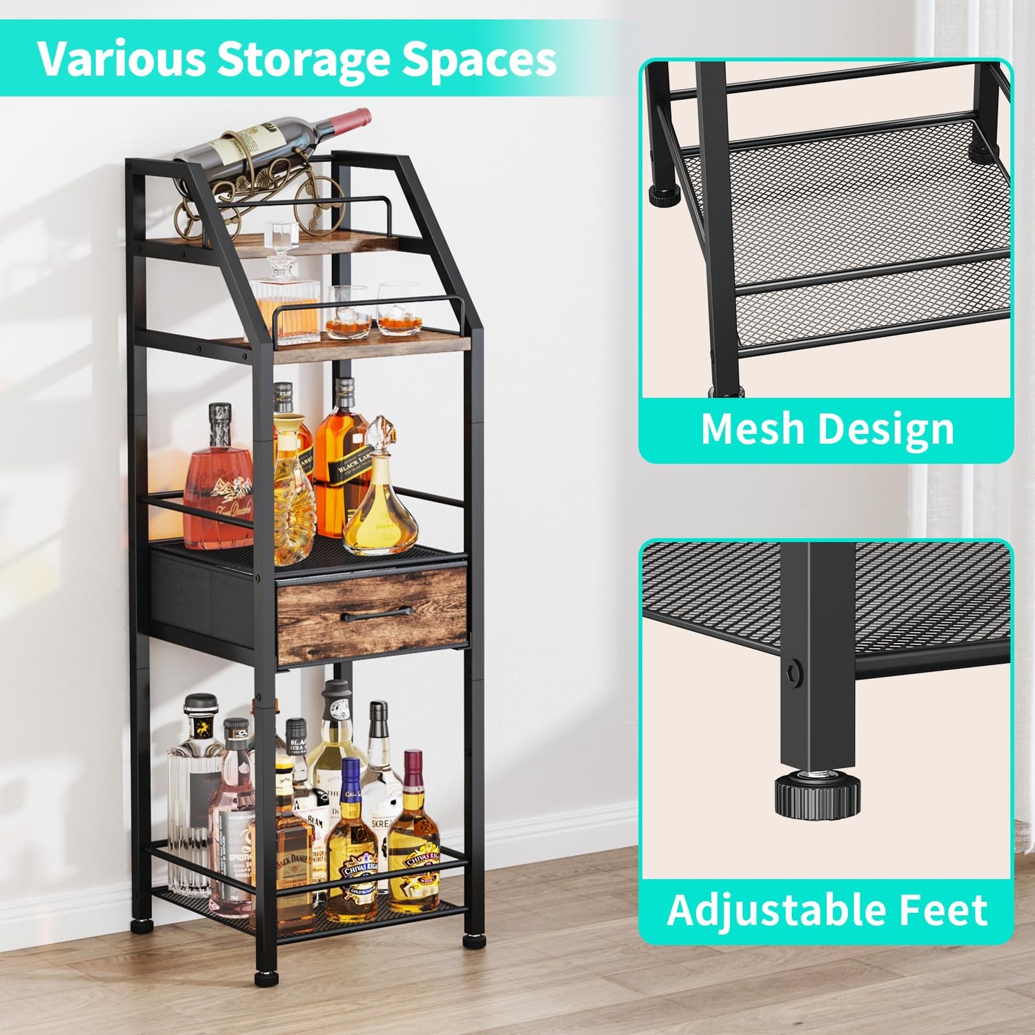 HapiRm Wine Rack Freestanding Floor - 4-Tier Stepped Liquor Cabinet Bar Stand for Home with Fabric Drawer, Wine & Glass Organizer for Living Room, Kitchen, or Dining Room