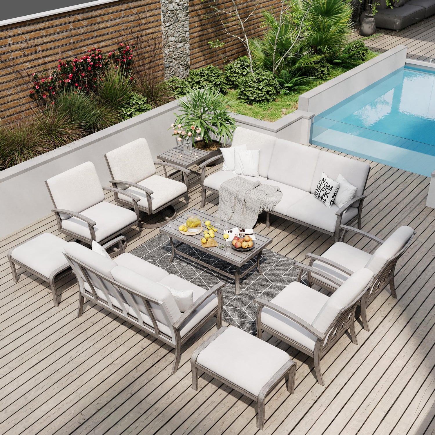 HAPPATIO 10 Piece Aluminum Patio Furniture Set, 3-Seat Outdoor Couch and Loveseat, All-Weather Outdoor Sectional Sofa with Swivel Armchairs and Ottomans, Garden Conversation Set(Gray)