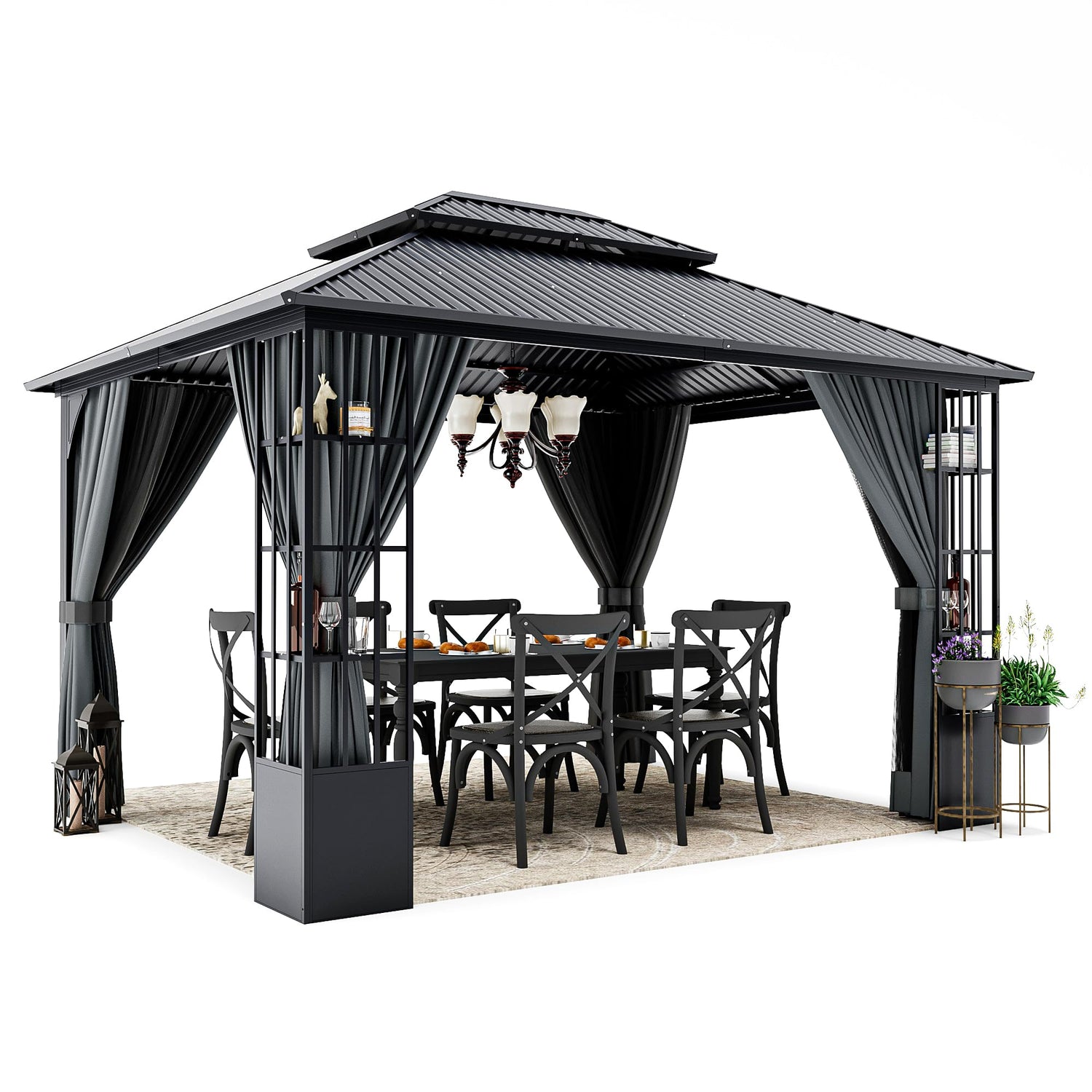 - Highly Practical: The gutter design of our double roof metal gazebo allows rainwater to flow smoothly from the eaves to the ground with more stability. The 10' x 12' hardtop gazebo space is spacious enough to provide you with a more convenient and long-term comfortable outdoor experience.