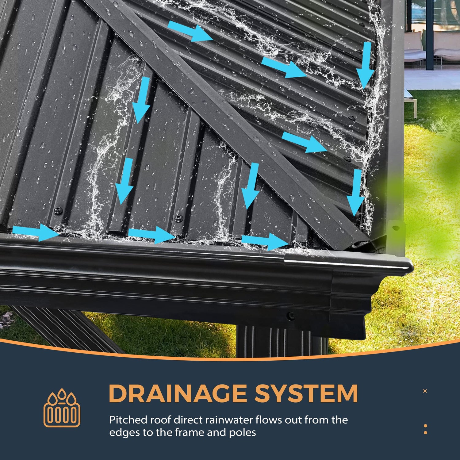 - Galvanized Steel Roof: This permanent gazebo features a stunning galvanized steel roof, a sharp contrast to traditional fabric or polycarbonate materials. The metal roof is much more durable and able to withstand snow, providing a secure and cool environment.