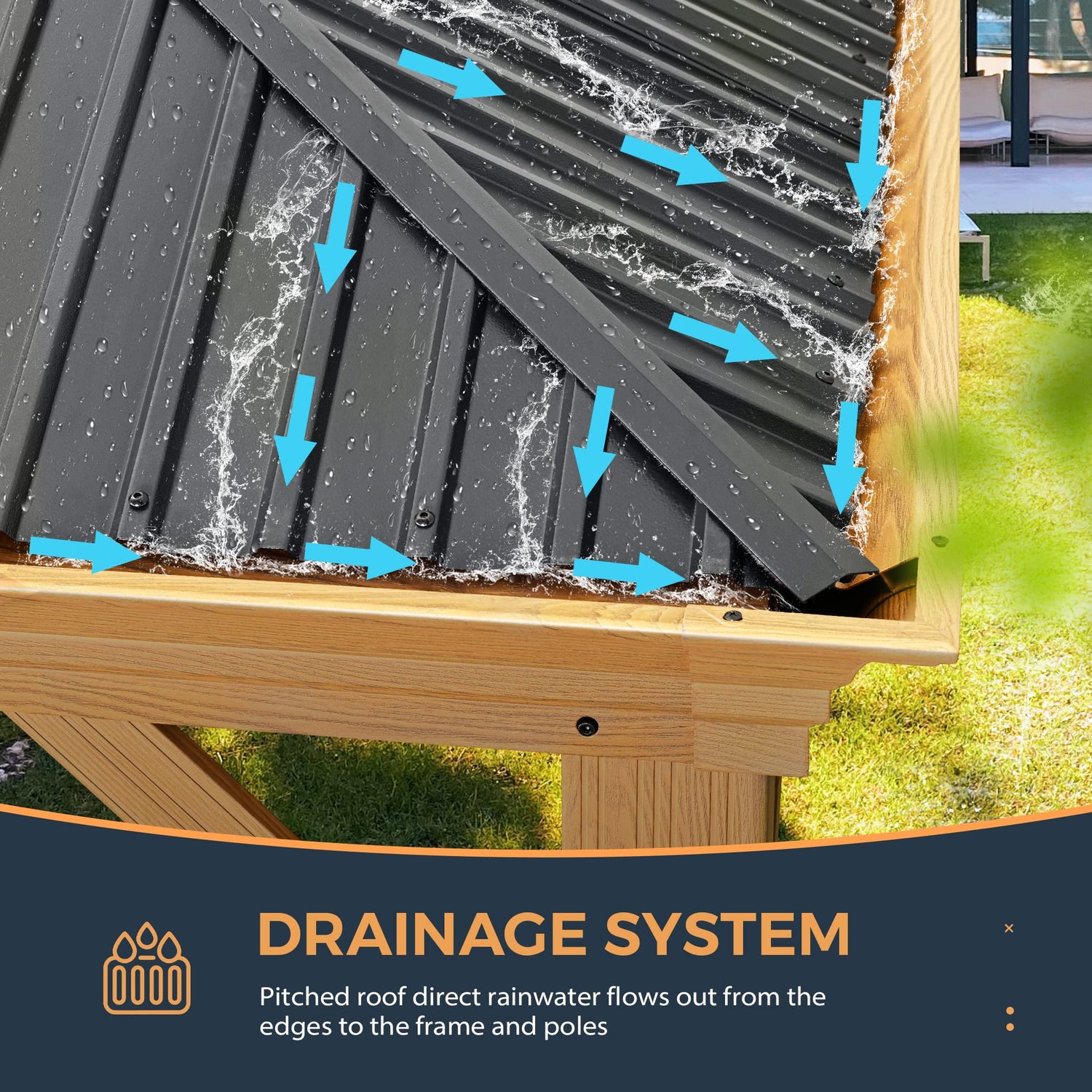 - Relax and Leisure: Whether you are entertaining guests, enjoying a family dinner, or simply relaxing and taking in the beauty of nature, our wood grain gazebo is the perfect solution. Its stylish and functional design will make it the focal point of your outdoor decor for years to come.