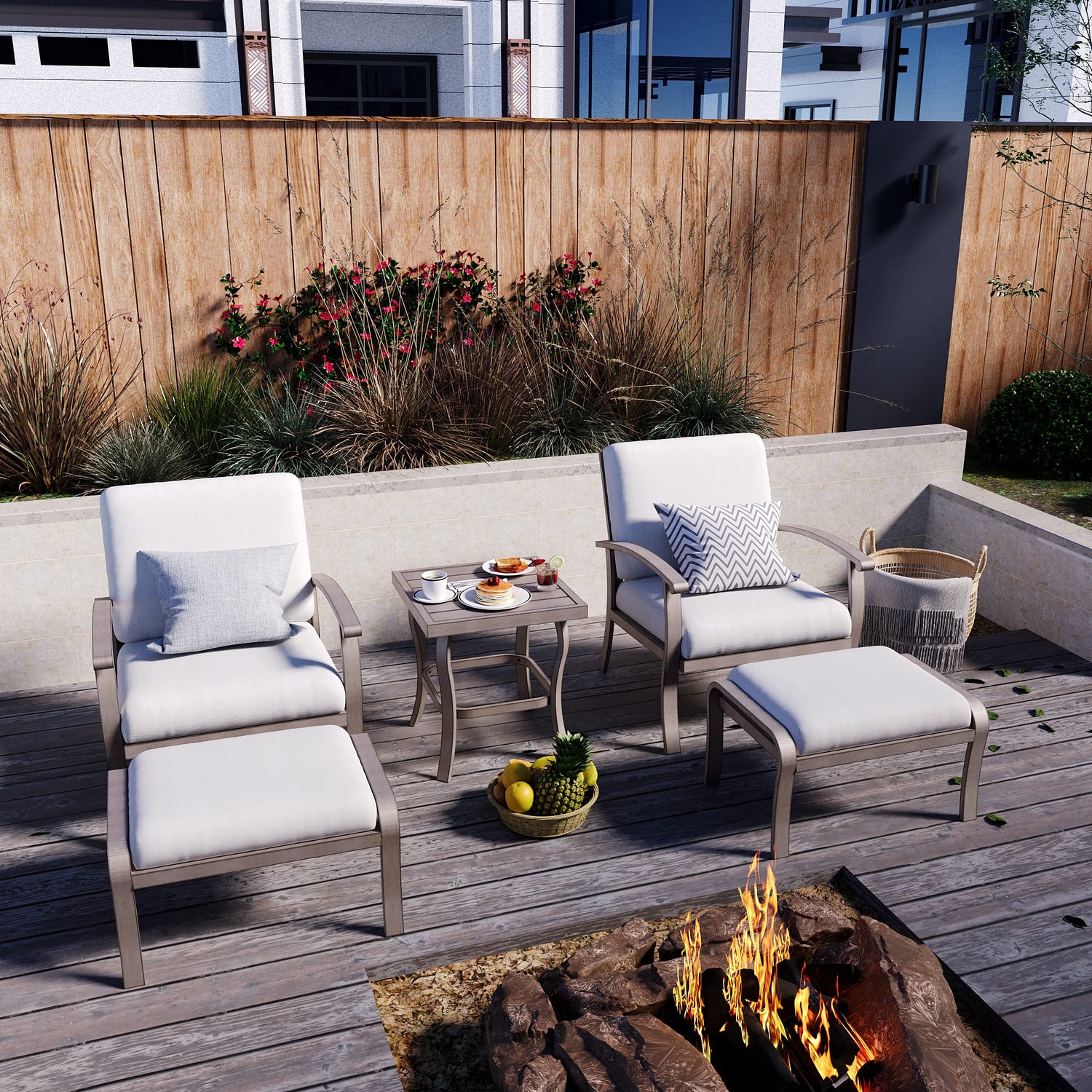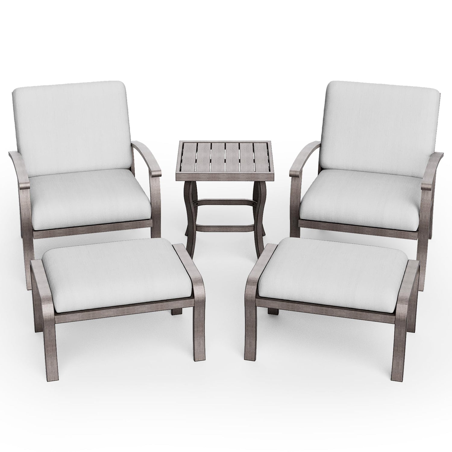 - 【Rust-Proof Aluminum】Our rustproof outdoor patio furniture set is made of lightweight, durable aluminum, which is superior to other metal deck furniture. This backyard furniture is light enough for any adult to lift easily. The powder-sprayed surface is clean and beautiful, creating a stylish and modern outdoor furniture set for you.
