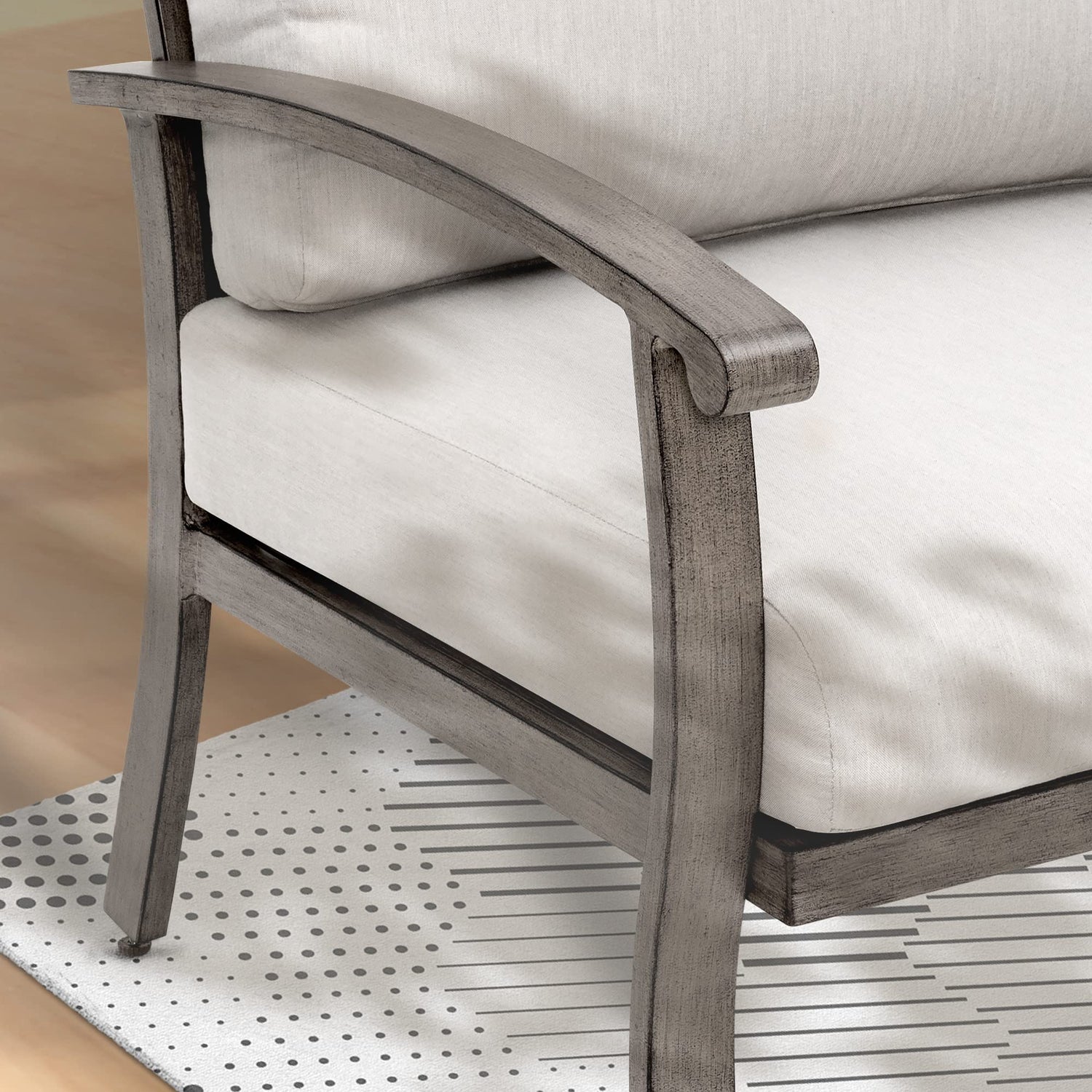 - 【Comfortable & Spacious】The 4-inch cushion and seat cushion eliminate soreness and discomfort during long periods of sitting. The cushion covers are waterproof and sunproof—perfect for outside furniture. Wide seats and dense cushions support your weight. Gently curved armrests and smooth corners make for a comfortable, great-looking outdoor patio furniture set.