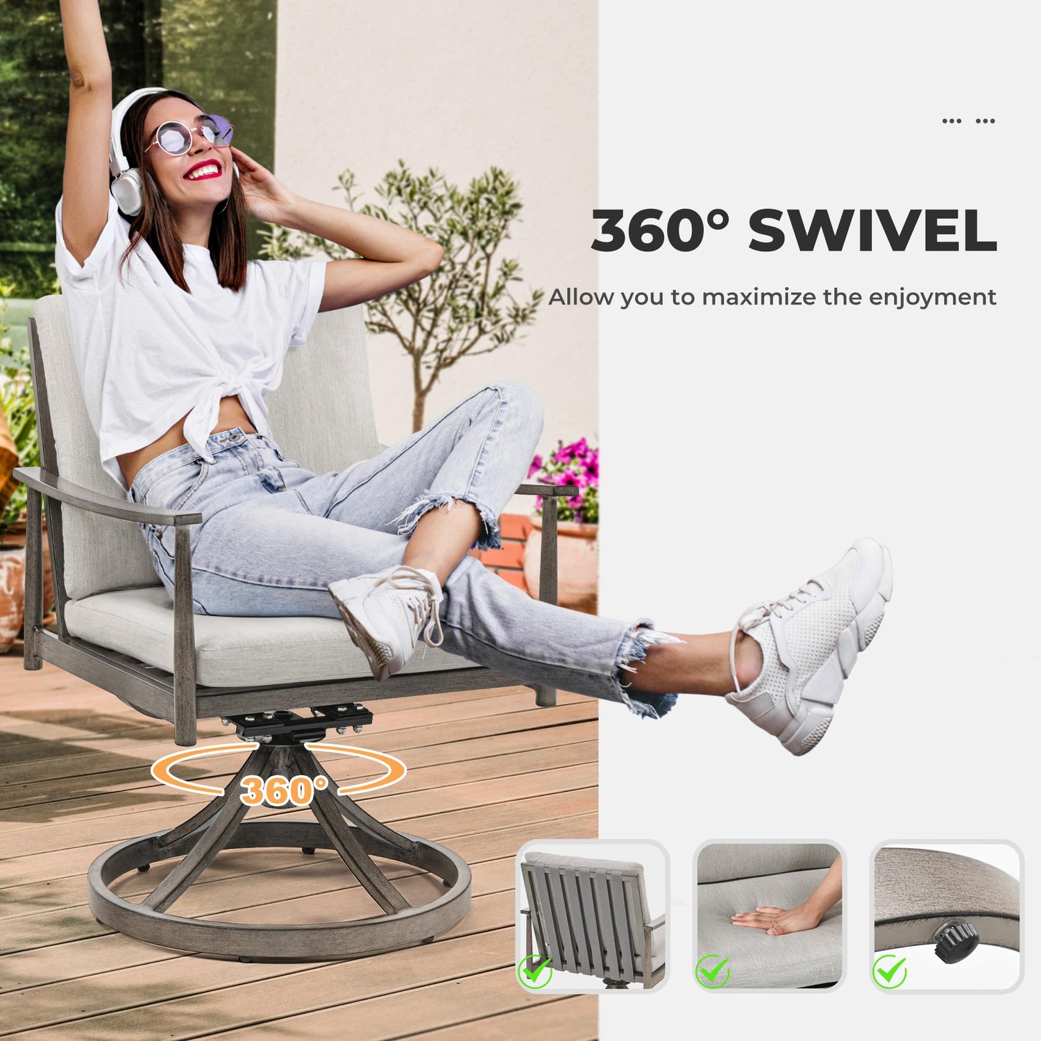HAPPATIO 9-Piece Patio Table and Chairs Set for 8, Aluminum Outdoor Dining Set with Cushions, 8 Swivel Dining Chairs, 1 Large Rectangular Table with Umbrella Hole for Lawn, Porch, Backyard, Grey