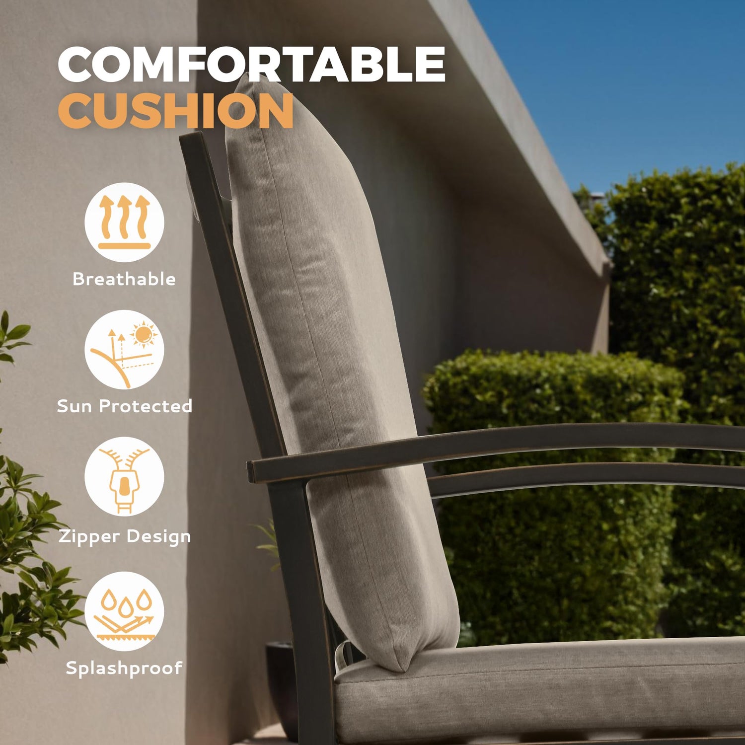 - 【Easy to Clean】The aluminum weather-proof frame is easy to clean. Removable upholstery covers make maintaining your outdoor furniture set easy and low-maintenance. You can easily insert and remove the seat cushion with convenience. Simply spot clean or hand wash with cold water, then allow it to air dry. We don't recommend machine washing.