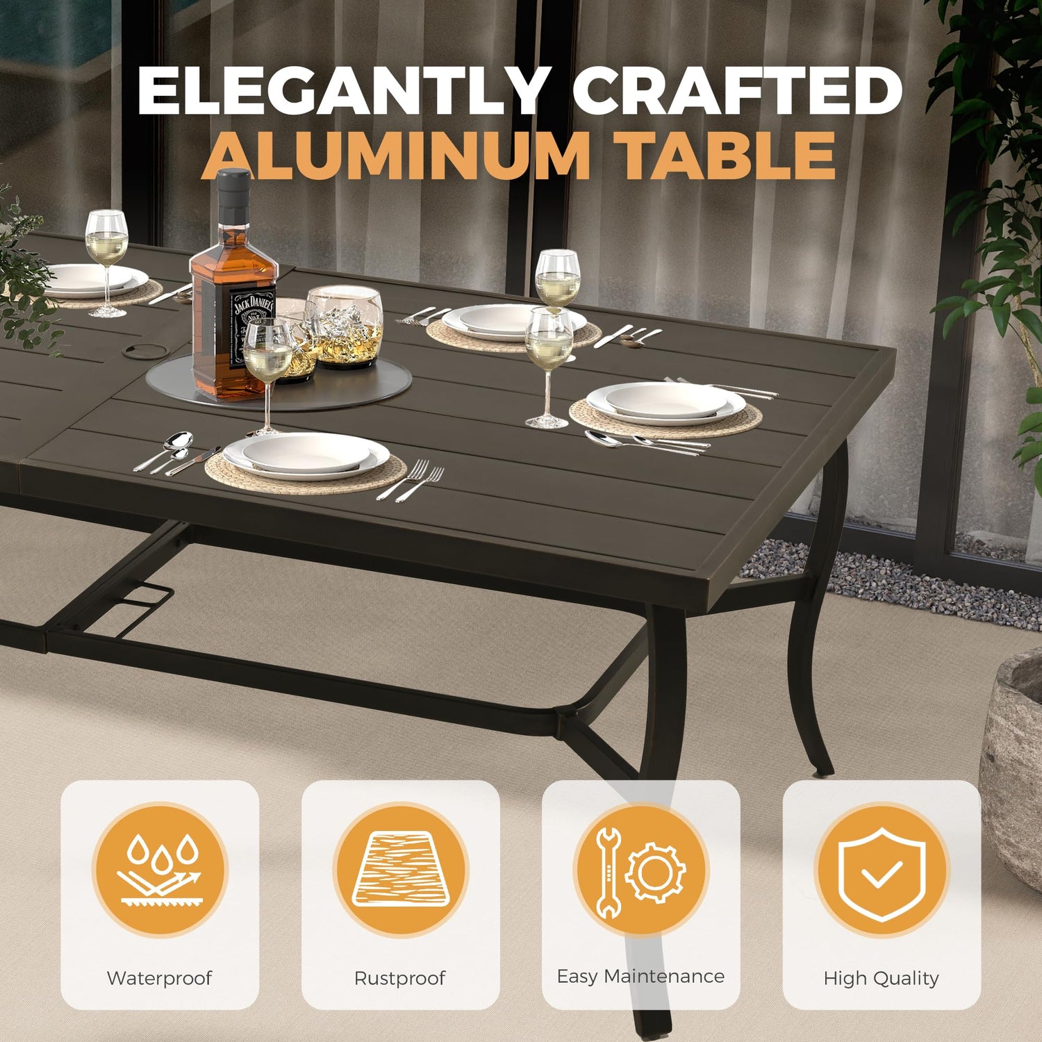 HAPPATIO Aluminum 9 Piece Patio Dining Set - Aluminum Outdoor Dining Set for 8, Patio Dining Table and Chairs Set, Patio Furniture with Table and Chairs (Black)