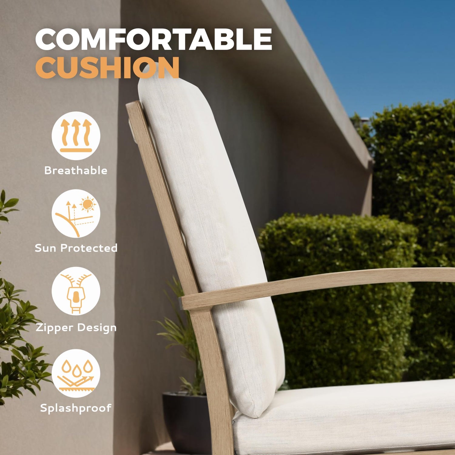 - 【Easy to Clean】The aluminum weather-proof frame is easy to clean. Removable upholstery covers make maintaining your outdoor furniture set easy and low-maintenance. You can easily insert and remove the seat cushion with convenience. Simply spot clean or hand wash with cold water, then allow it to air dry. We don't recommend machine washing.