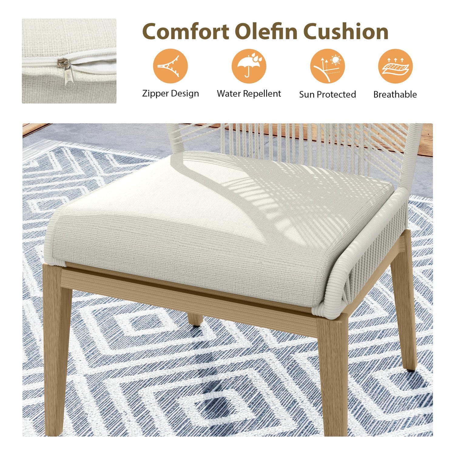 - Olefin Fabric Cushion: Our patio dining set is equipped with 3.5 inch thick cushions made from high-quality Olefin fabric. This fabric choice ensures a soft and breathable feel while maintaining its color under the sun. The high-density sponge inside offers support and minimizes discomfort, so you can enjoy lounging for hours without a second thought. The removable covers with a hidden zipper make it easy to keep your cushions pristine and clean.