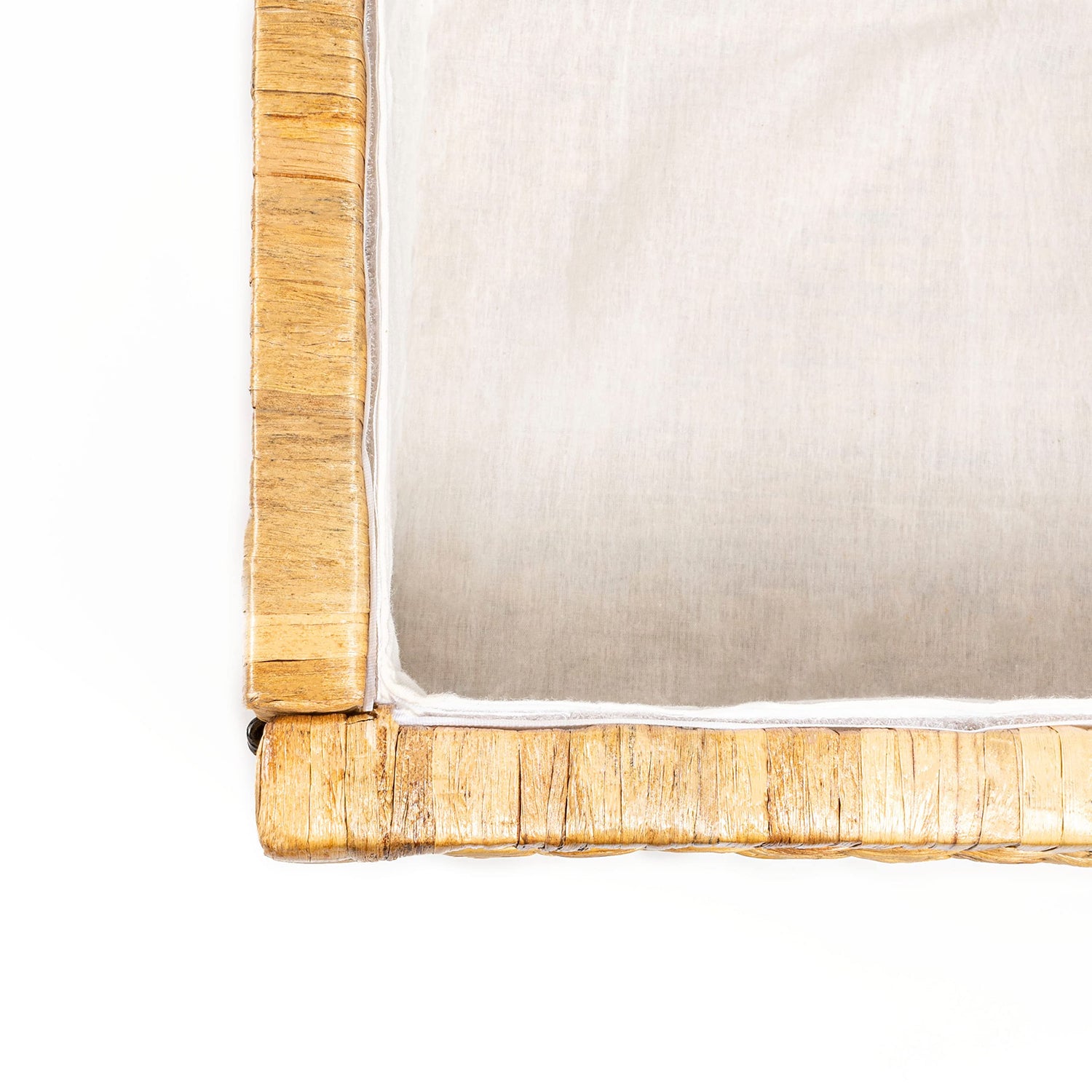 - Simple design has wooden feet, a fabric liner and a removable lid