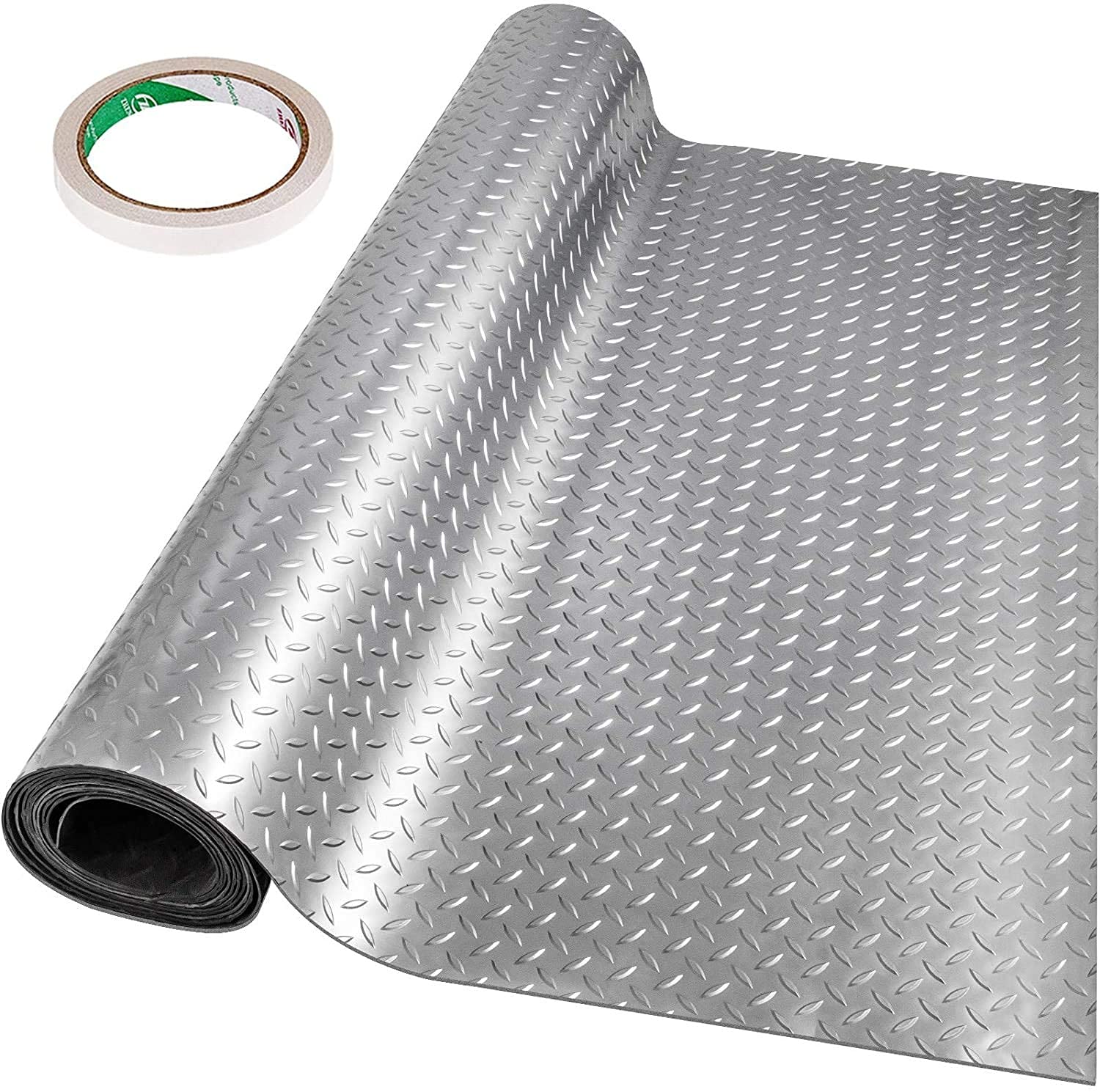 - Slip-proof Design: With beautiful diamond texture on the surface, our garage flooring roll is non-slide and secure for people to walk in/out. It is heavy duty and suitable for long-time car passing, people walking, equipment placement.