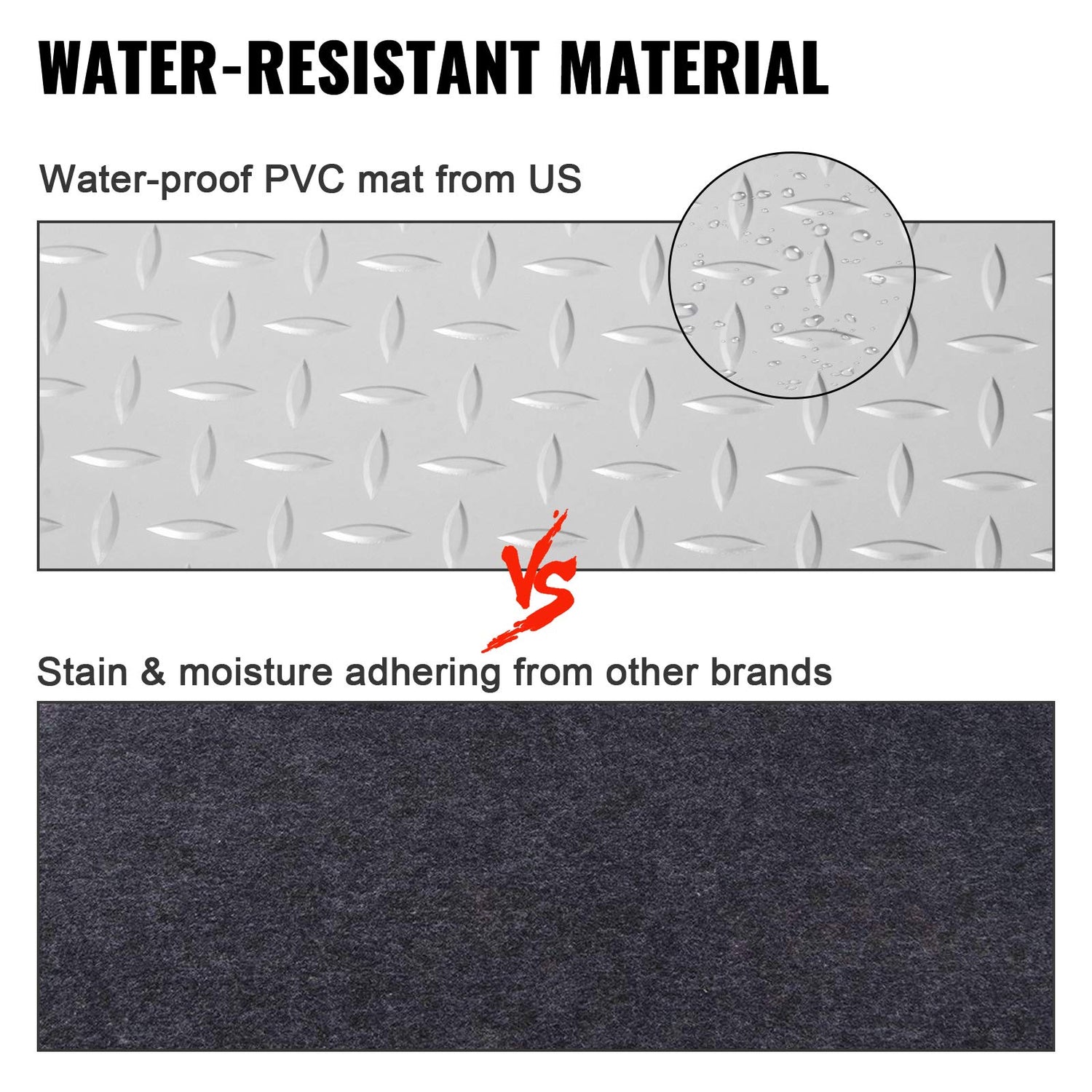 - Superb Mat Material: Amount: 1pcs; Color: Silver; Product Size: 4.9x19 ft; Mat Thickness: 0.06"(1.5 mm); This garage flooring mat is manufactured with PVC Vinyl material, making it wear-proof and non-deformed after a long time use.