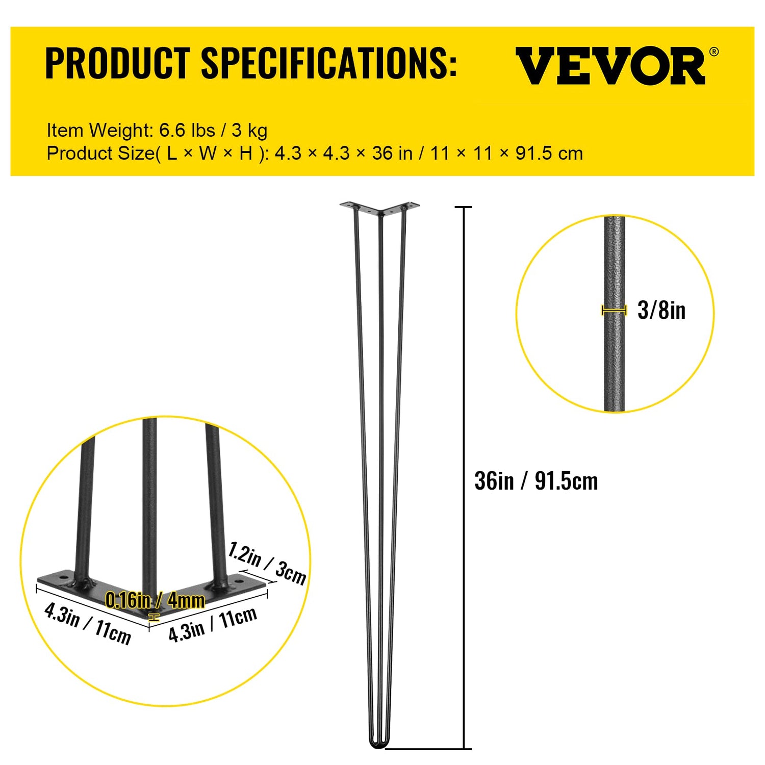 - Designed for Versatility: You can get 4 PCs hairpin table legs, 4 x rubber floor feet, and 16 x screws. Our desk leg kits are extraordinarily versatile and can support a variety of styles such as rustic, modern, industrial, and more! Home, offices, bars, and retail displays can benefit. Make your decoration unique and distinctive.
