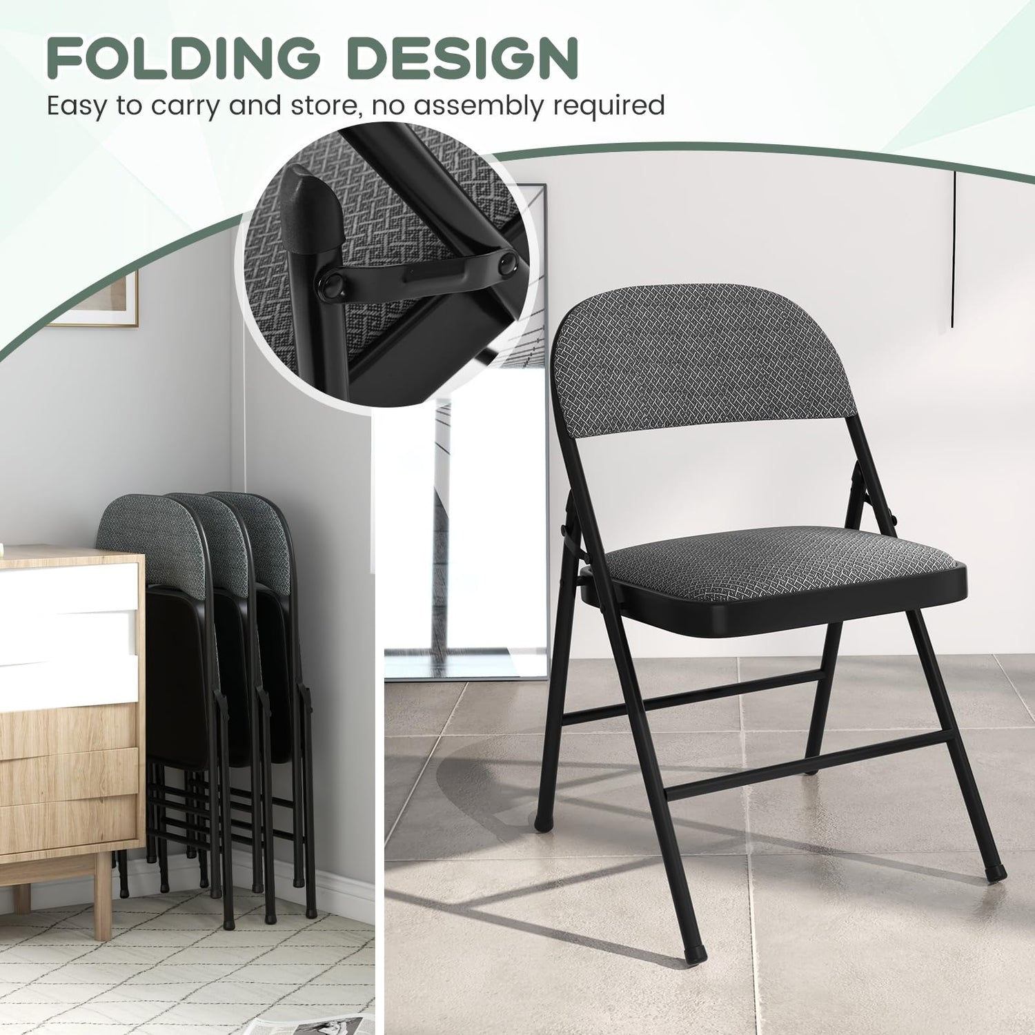 HAPPYGRILL 4 Pack Folding Chairs, Fabric Commercial Chairs w/Padded Seat & Back, Metal Frame, Portable & Foldable Dining Chairs for Office Party Guest Room Conference Room Event