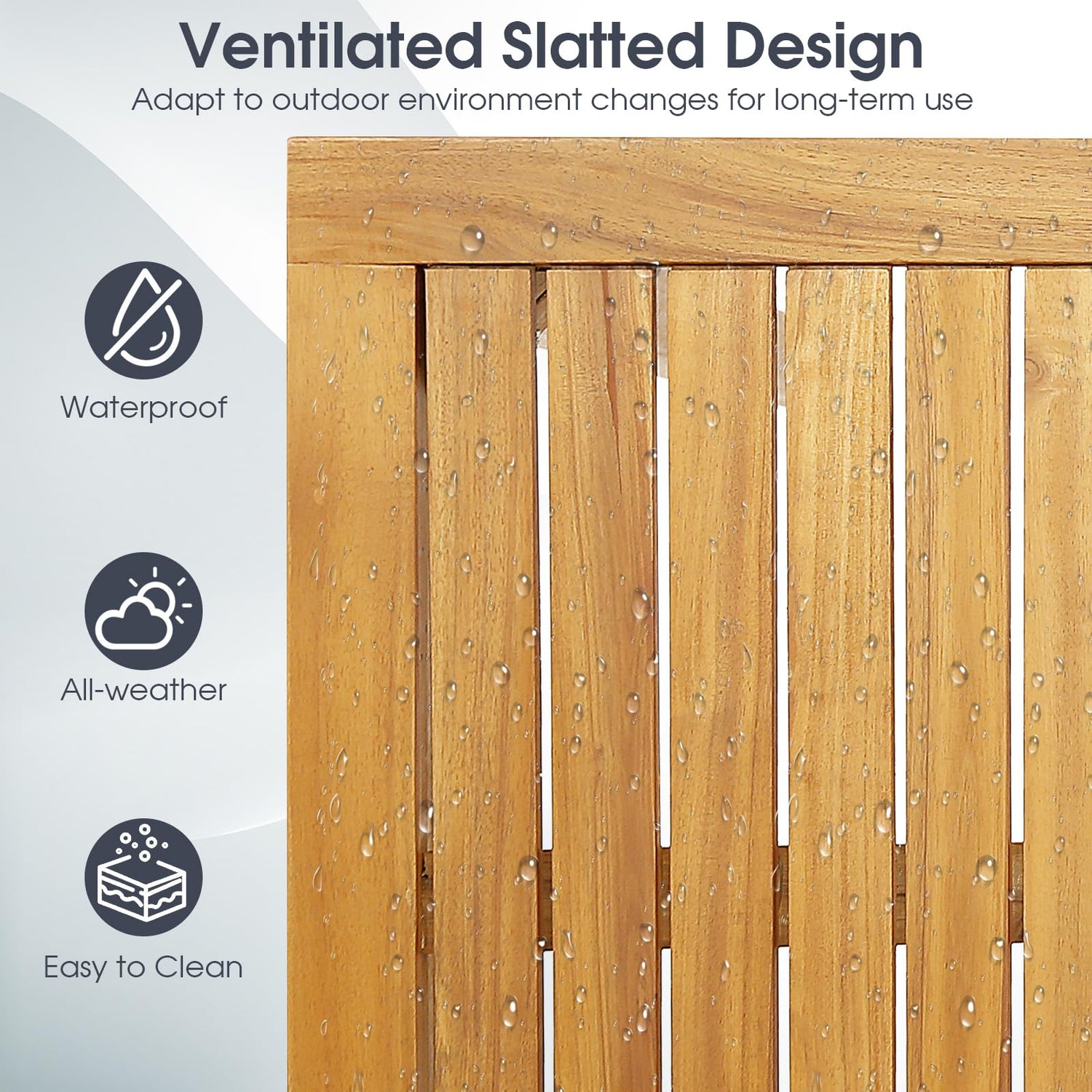 Crafted from solid acacia wood, the inherent strength of this material ensures a robust structure, with each stool able to support up to 400 lbs and the table a generous 165 lbs. The smooth, burr-free surface makes maintenance a breeze while adding a touch of natural elegance to your outdoor décor.