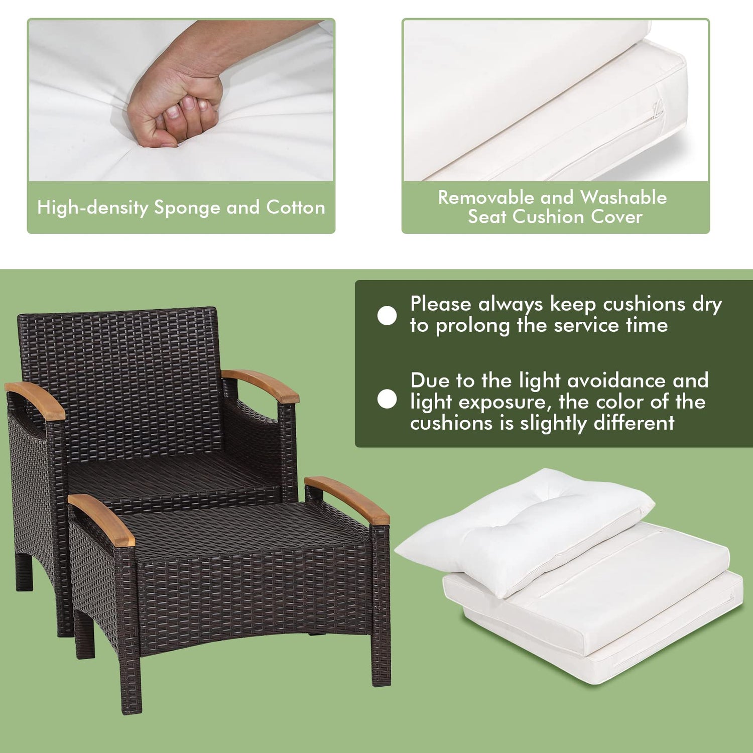 - 【Soft Padded Cushions】 All the cushions are filled with high-density sponge and cotton that provide you with comfortable sitting feelings. And the removable and washable seat cushion covers allow you to clean them with ease. Note: 1) Please always keep cushions dry to prolong the service time. 2) Due to the light avoidance and light exposure, the color of the cushions is slightly different.