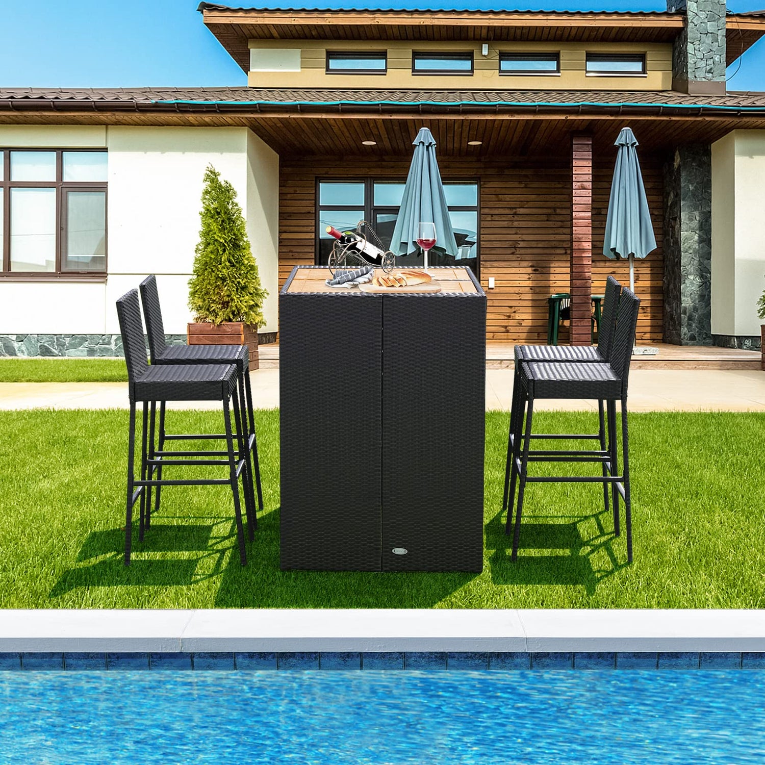 - 【Space-Saving Design】 When not in use, the 4 bar chairs can be pushed under the bar table, which is quite space-saving. This bar set with elegant appearance and high functionality will be a perfect addition to poolside, patio, backyard and so on. You can enjoy soothing outdoor leisure time with friends or family in any places you want with the bar set.