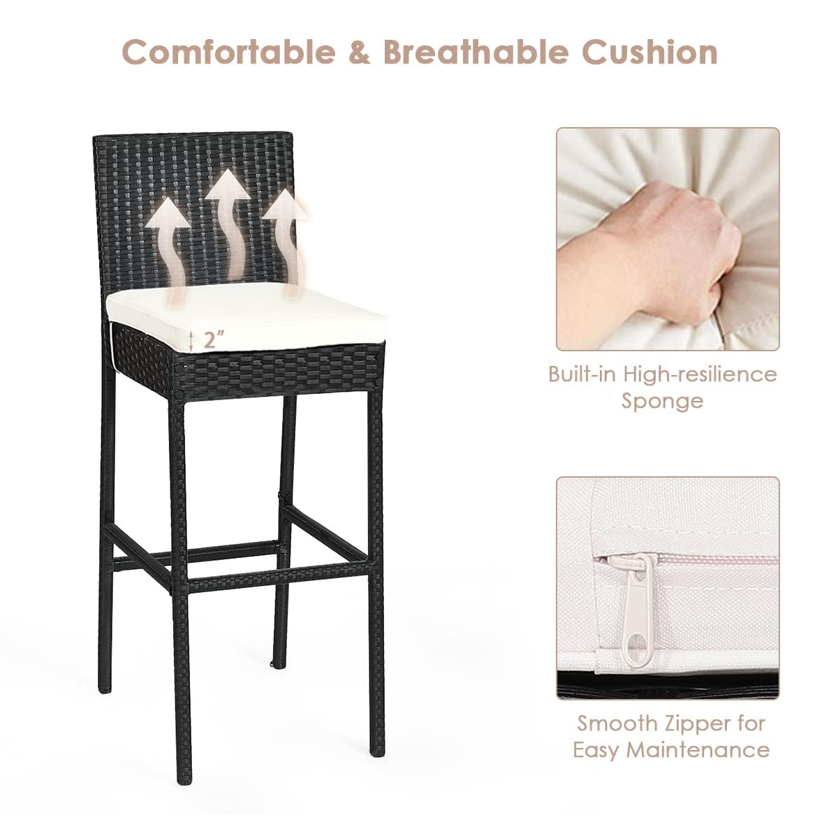- 【Comfortable Bar Height Chairs】 Designed with backrest and footrest, the bar stools will better relax your whole body from your feet to the back. Each bar stool is equipped with an ultra-comfy cushion which is filled with soft and elastic sponge, and firmly kept in place by the fixing straps. Moreover, the smooth zippers make the cushion covers easy to remove and wash.