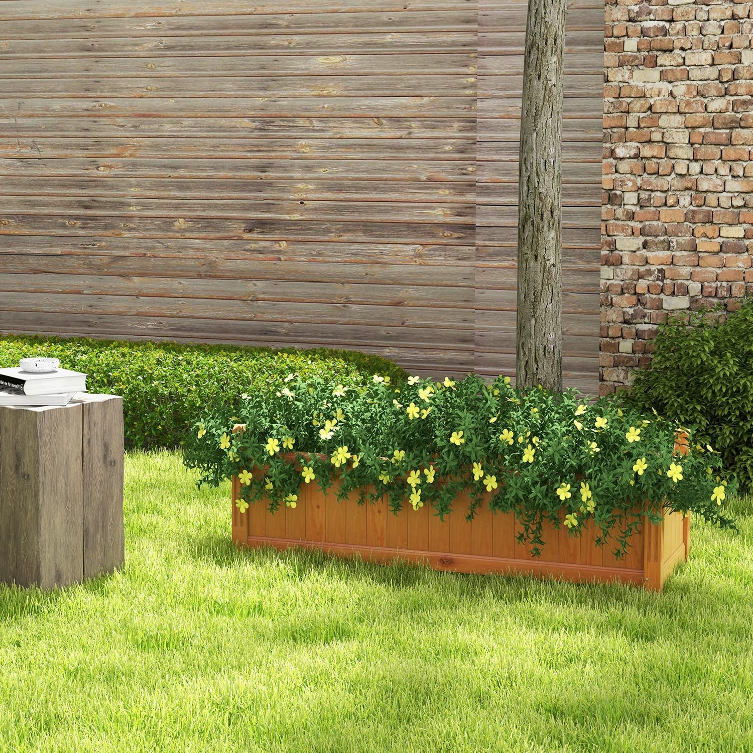 - 【Large Planting Space】 Add the 43.5” x 16” x 14” (L x W x H) flower bed to your garden. It offers you a large capacity to keep a diversity of plants. Also, it can not only change space layouts, but also bring an elegant vibe that comes from stunning wood grains & delicate polygonal connectors.