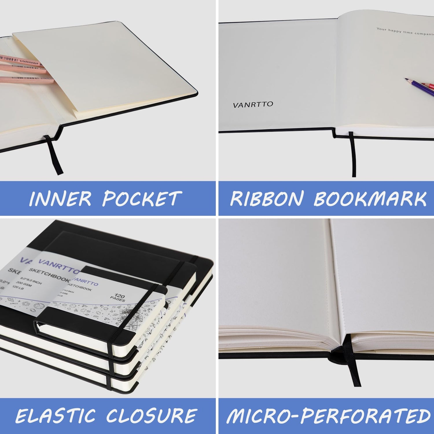 - GREAT PROTECTION OF YOUR WORK & INSPIRATION: This sketchbook for drawing is protected by durable hardcover, which is made of environmental friendly PU leather, the comfortable touch make you feel happier while sketching or carrying with this hardcover sketchbook. VANRTTO sketch pads developed perforated pages design, make your work can be easily tore off if you need.