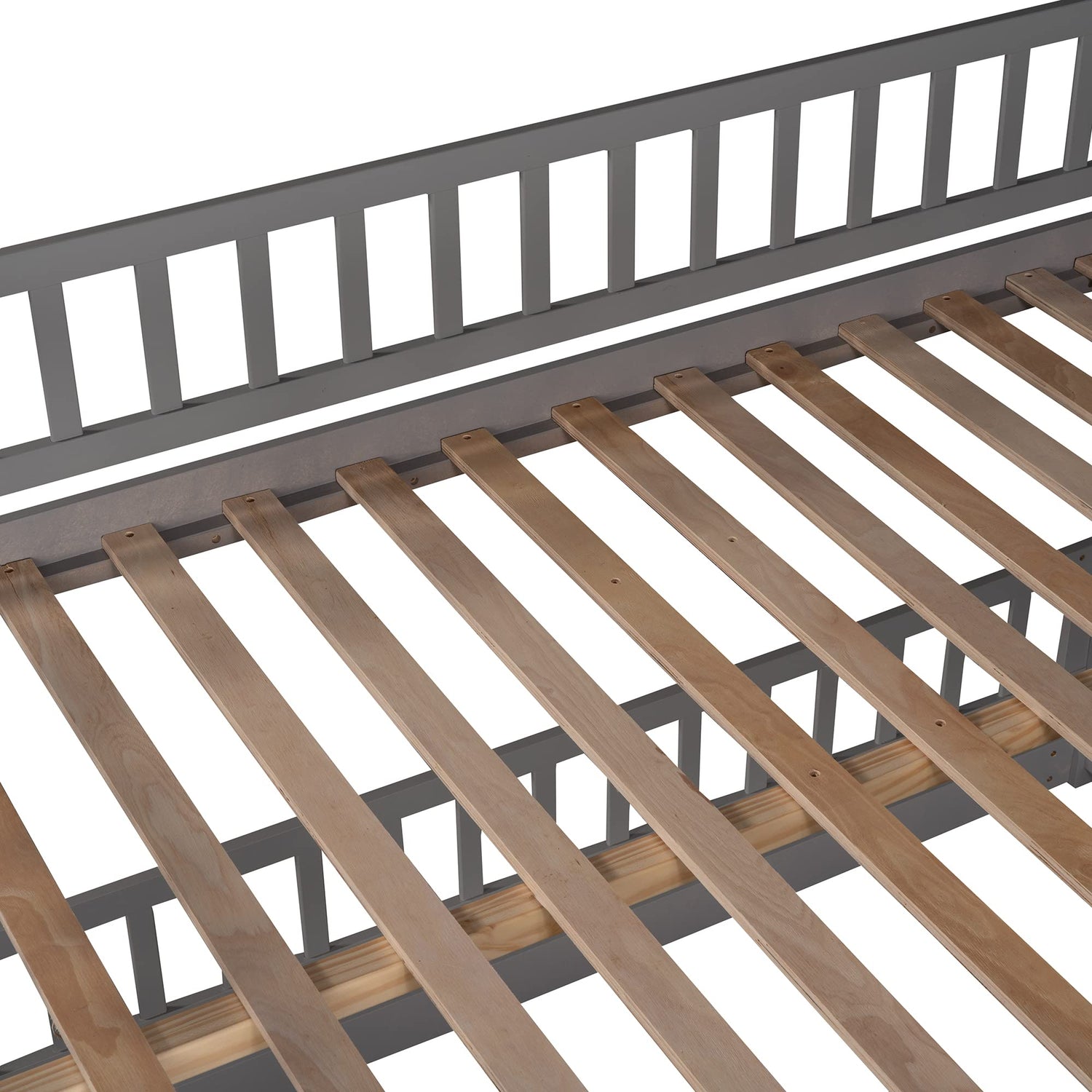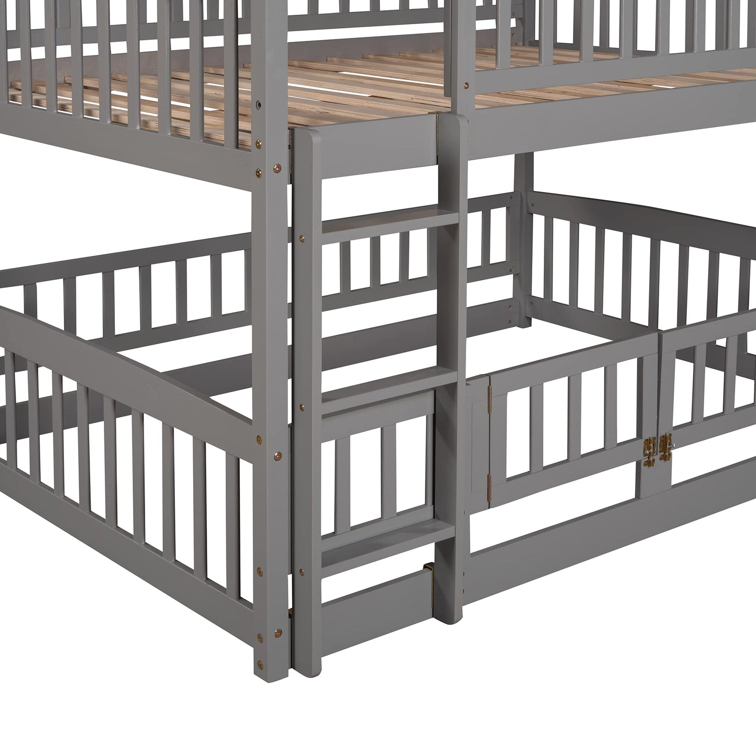 Harper & Bright Designs Bunk Bed with Slide, Full Over Full Low Bunk Bed with Fence & Ladder for Toddler Kids Girls Boys (Gray)