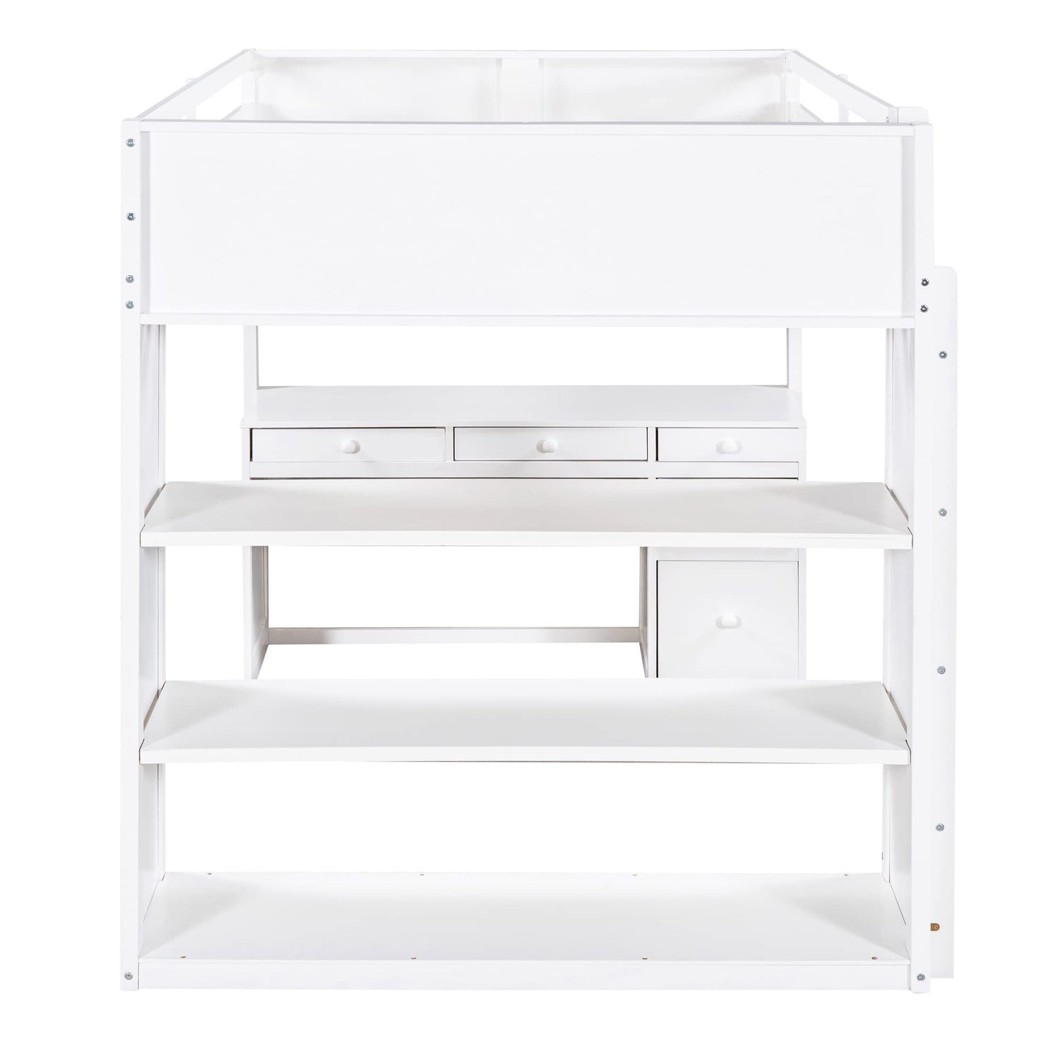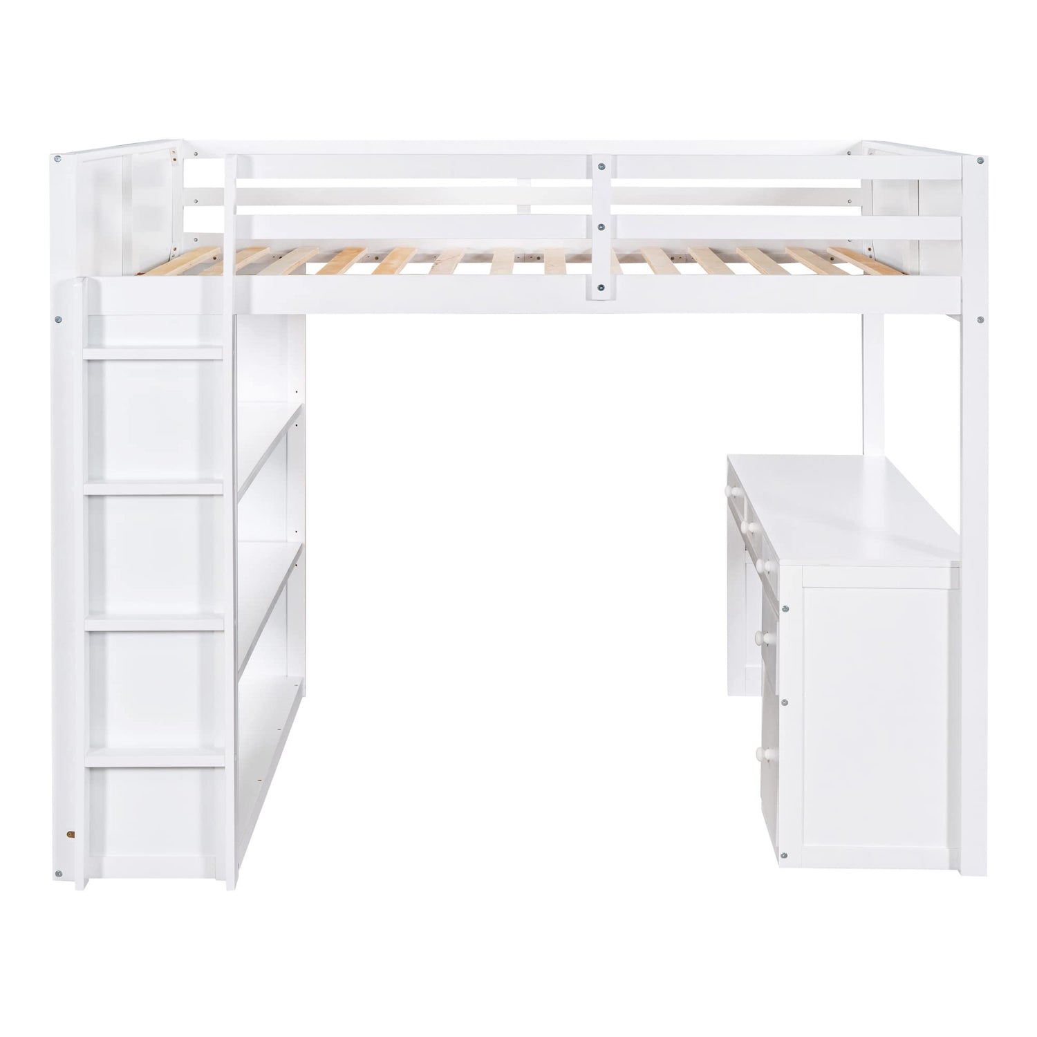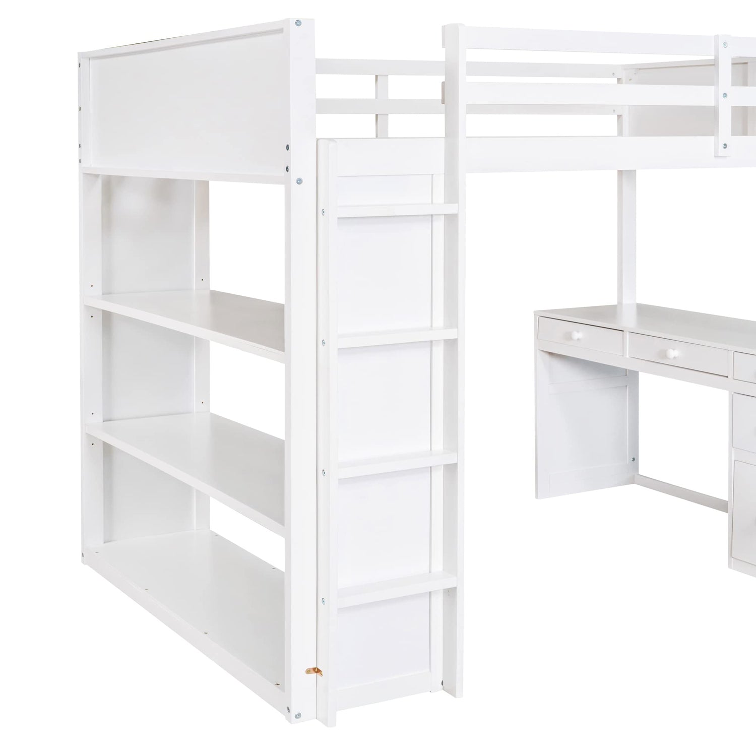 White Full Loft Bed with Desk, Bookshelf, and Storage Drawers by Harper & Bright Designs