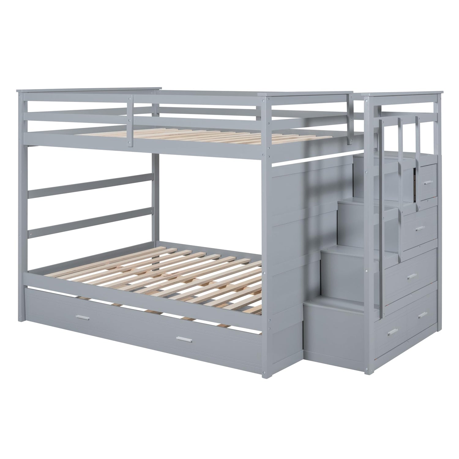 Harper & Bright Designs Full Over Full Bunk Bed with Storage, Wooden Bunk Bed with Trundle and Staircase, Gray