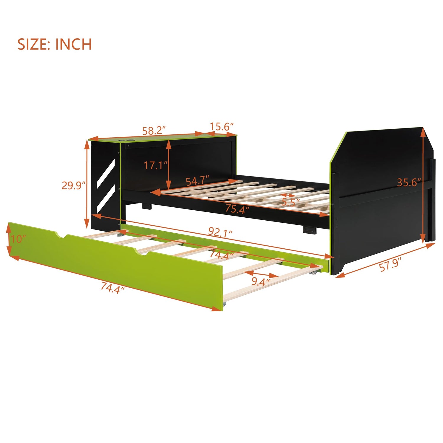 • 【Full Size Gaming Platform Bed with Trundle】The pull-out trundle provides an extra twin-size sleeping option, making it ideal for overnight guests or shared rooms while saving valuable floor space.