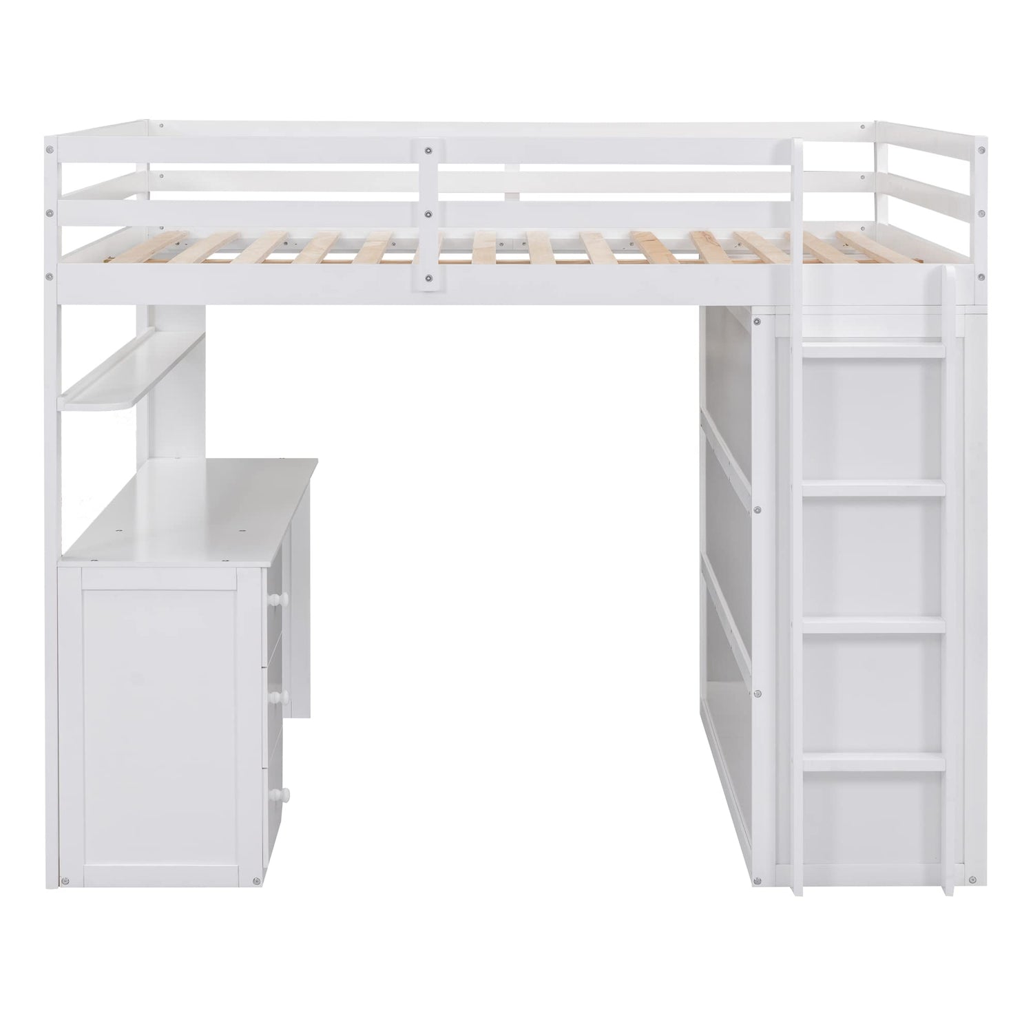 Harper & Bright Designs White Full Size Loft Bed with Desk, Wardrobe, and Storage Drawers