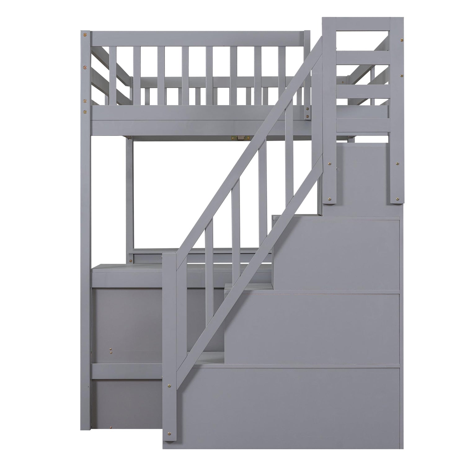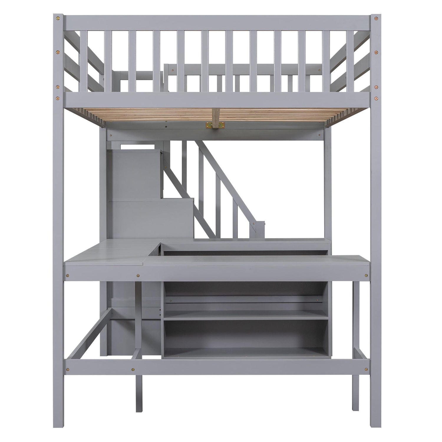 Discover the Harper & Bright Designs Full Size Loft Bed with Stairs & Desk – Versatile Solid Wood Frame in Gray