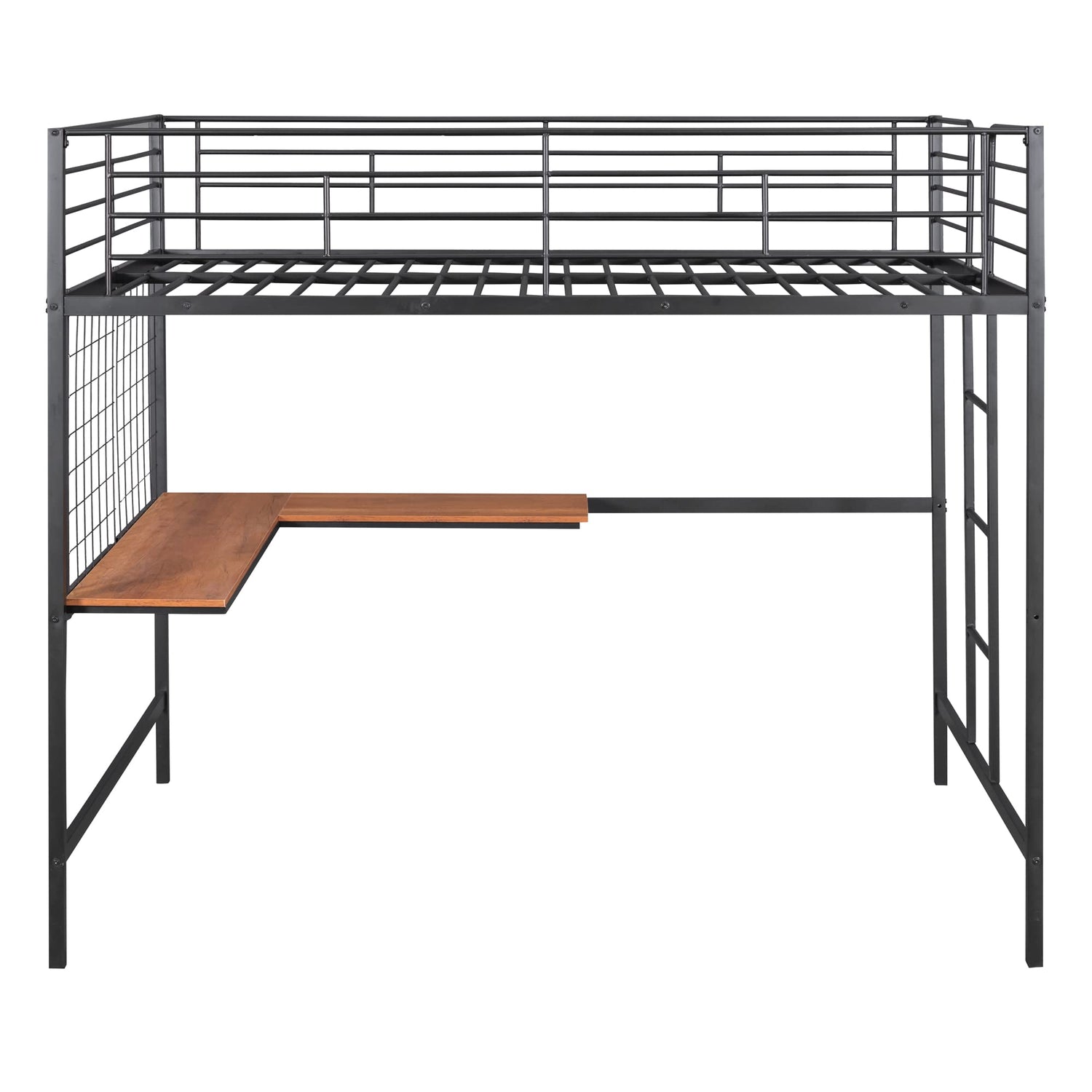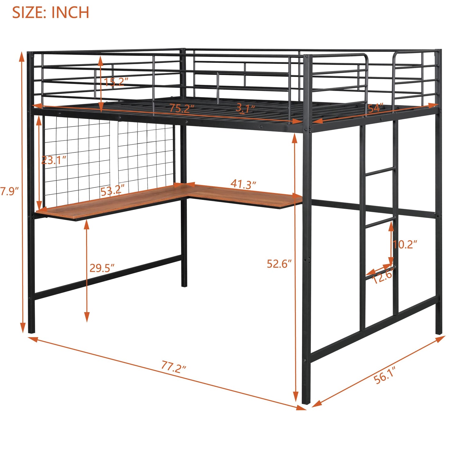 - 【 Loft Bed with Desk & Metal Grid】This full size loft bed with desk underneath offer you plenty of room for a variety of options. It's ideal for storage, work station, a play area, a gaming center or an extra space for a visiting guest.what' more ,it comes a metal grid, which can hang some decorations, photos, etc,adds charm and character to kid’s bedroom.
