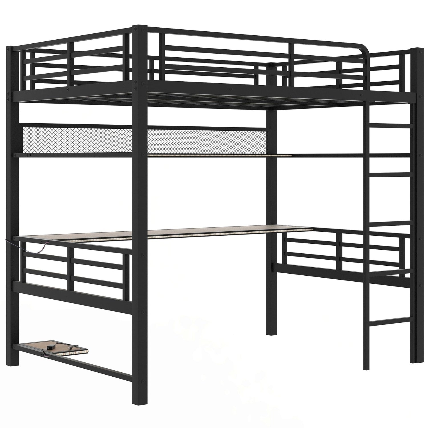 Details: 1.The metal loft bed is a versatile gaming bed, perfect for younger gamers. Featuring a large storage desk with upper shelving for collectibles and storage.
