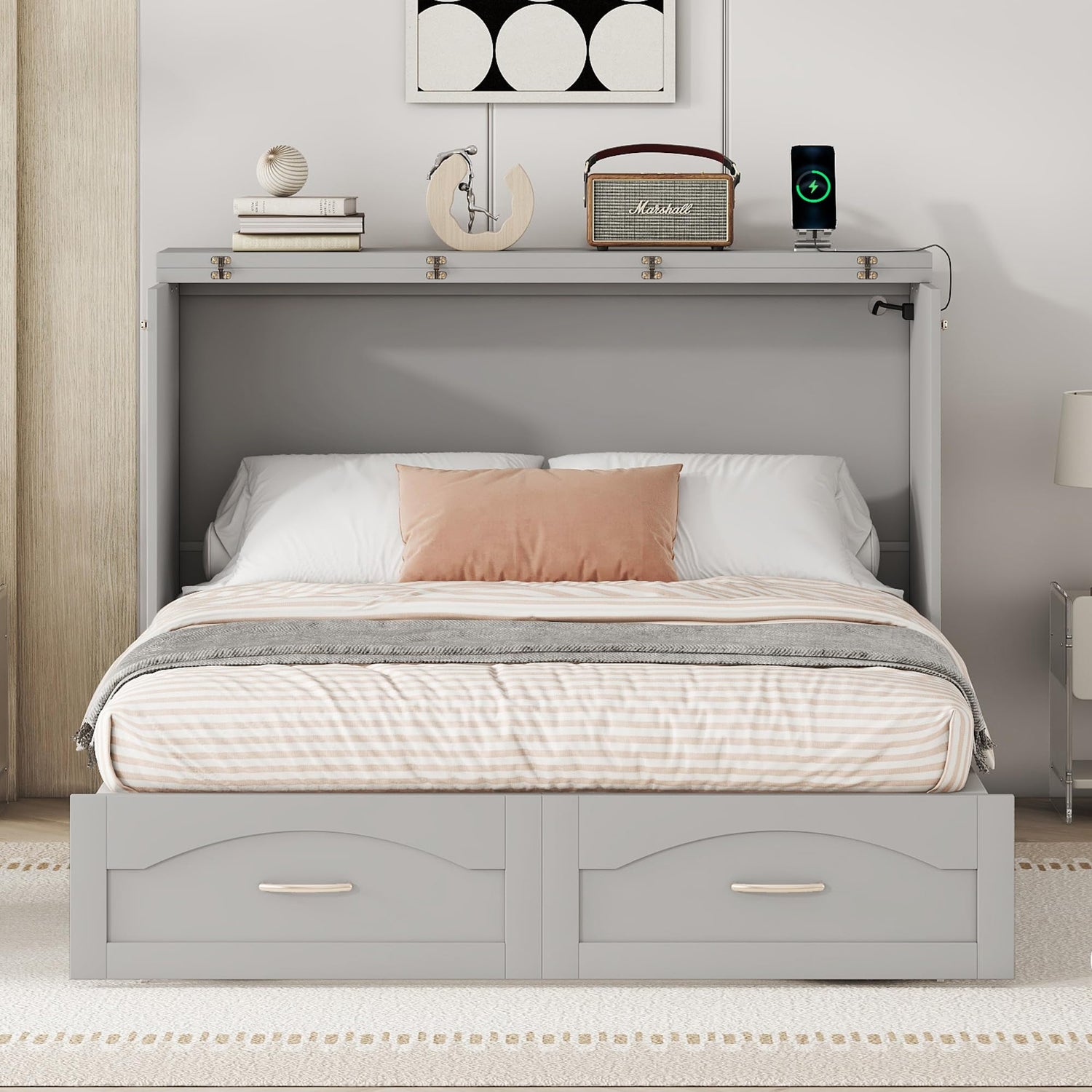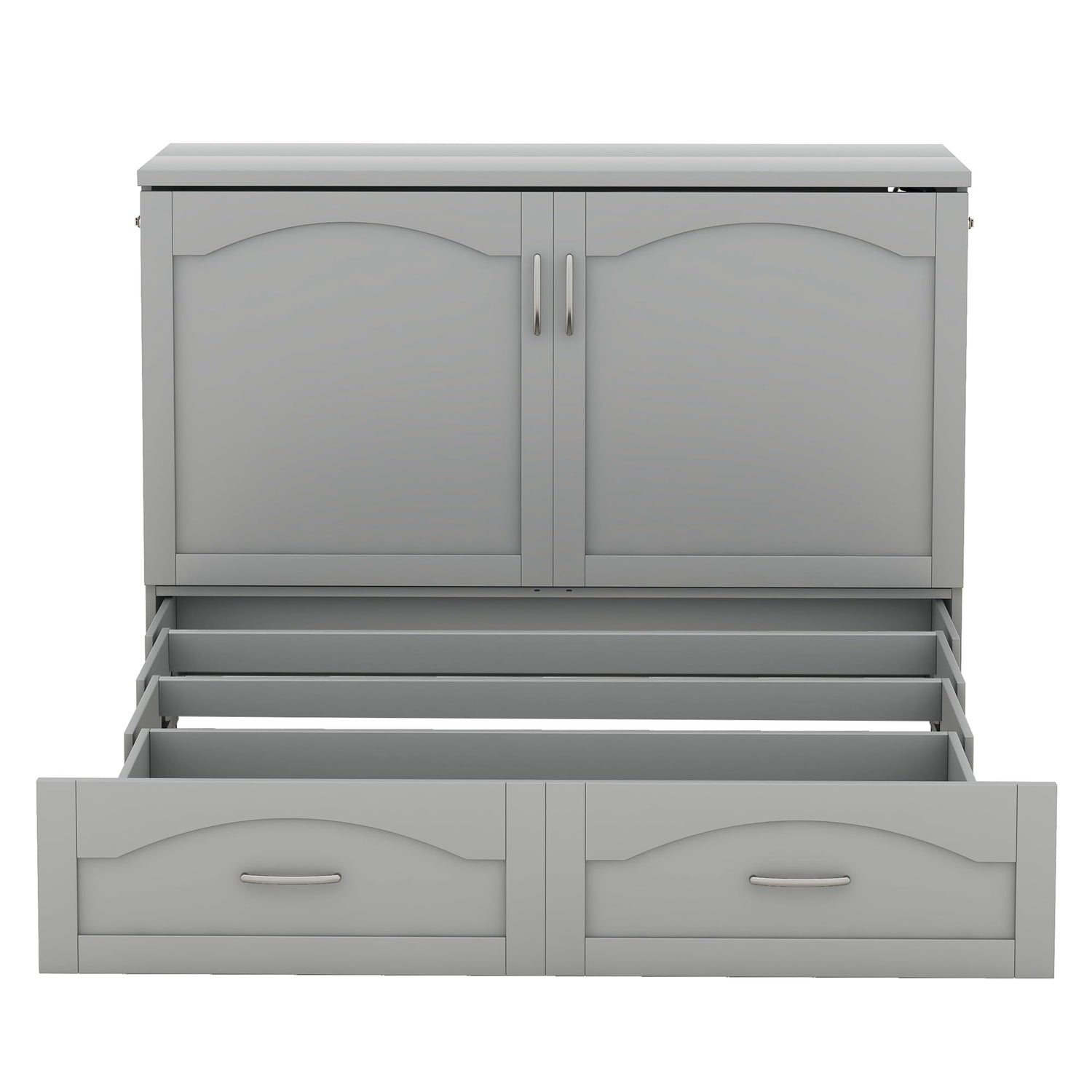 Harper & Bright Designs Full Size Murphy Bed Cabinet Wall Bed Chest with Storage Drawer,USB,Charging Station, Wood Murphy Bed Frame for Home Office or Small Room-Gray
