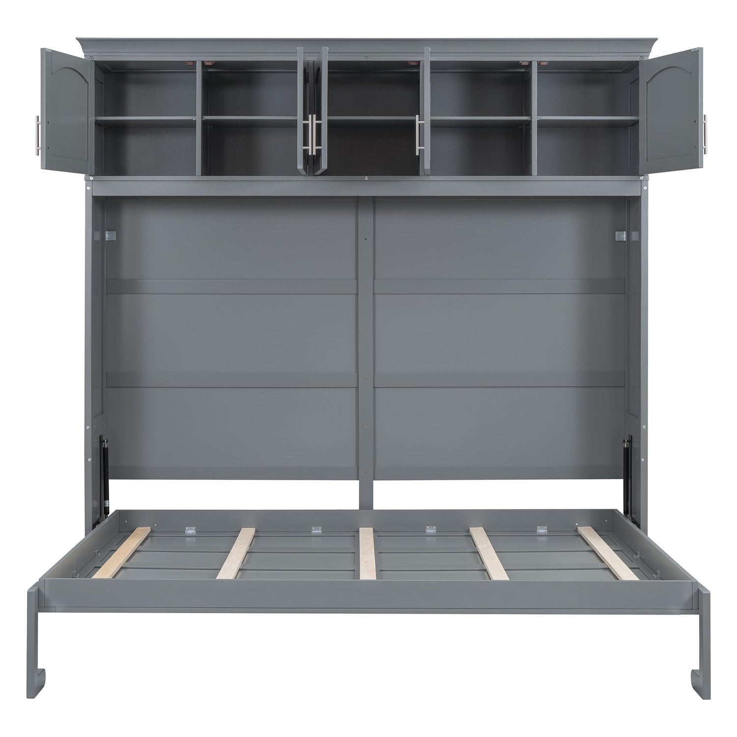 Harper & Bright Designs Full Size Murphy Bed Wall Bed with Storage Cabinets, Space-Saving for Multipurpose Guest Room Bedroom or Home Office, Gray