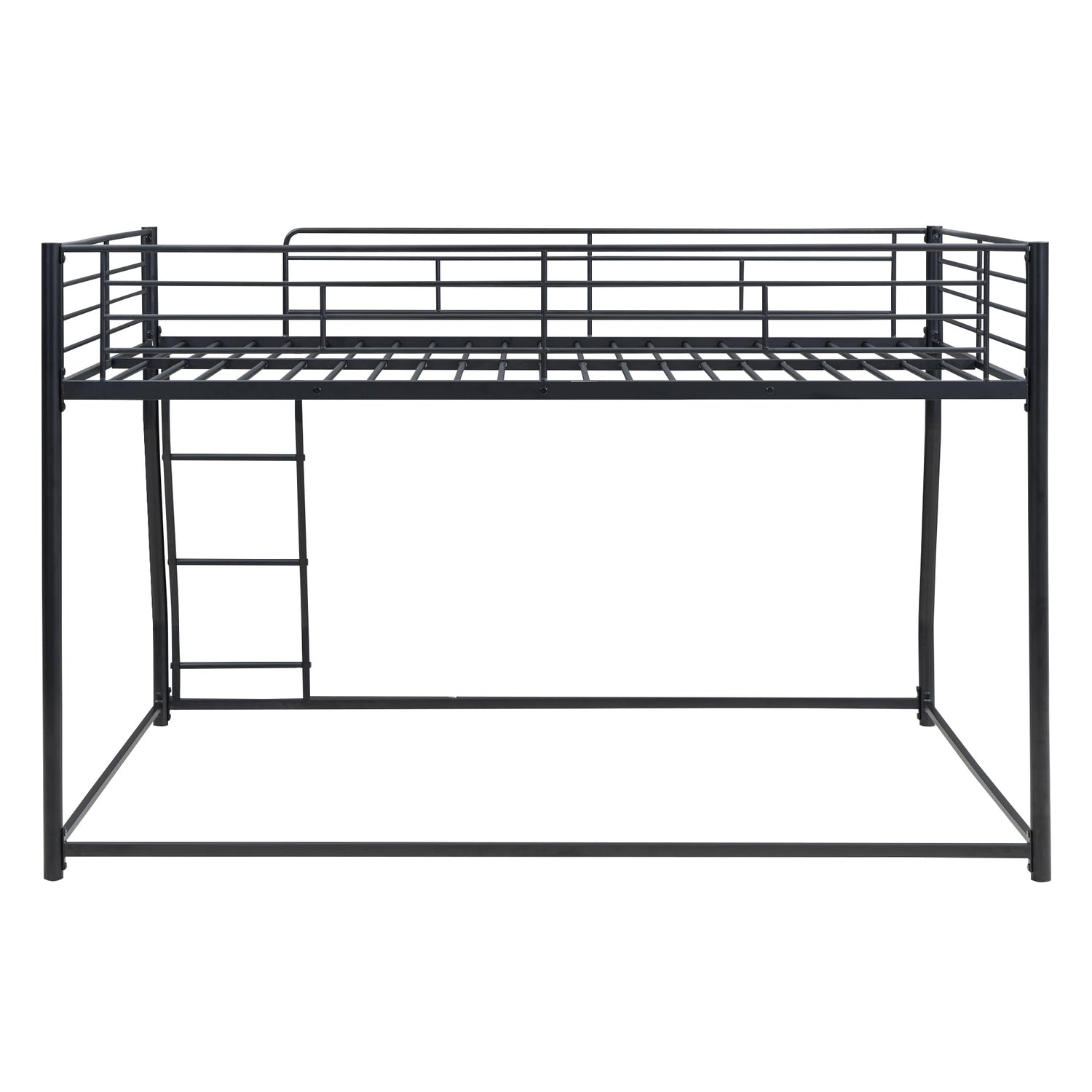 Harper & Bright Designs Metal Bunk Bed Full XL Over Queen, Floor Bunk Bed with Ladder & Safety Guardrail, Montessori Floor Bed Frame Bottom Bunk for Kids Boys Girls, No Box Spring Needed, Black