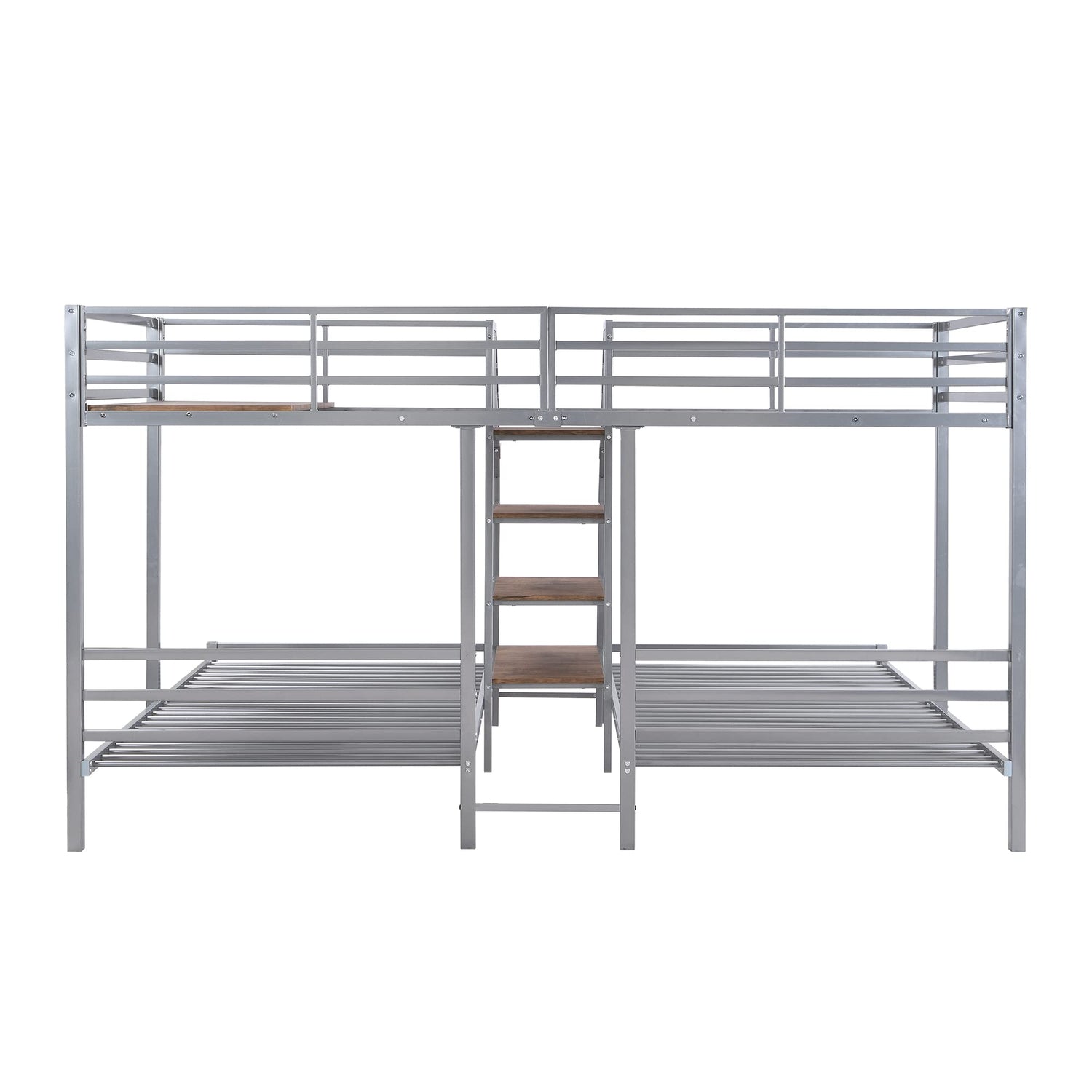 - 【High Safety Triple Bunk Bed Frame】 This metal triple bunk frame Featuring full-length guardrail on top bed to guarantees user’s safety. The wide ladder makes it easy for children to climb up and down from the upper bed. secured metal slats for each bed that provide great support. This triple bunk bed Combined with 1 twin size upper bunk, 2 twin size bottom bunk, this metal triple bunk bed perfect for multi-child family or spontaneous sleepover guests.